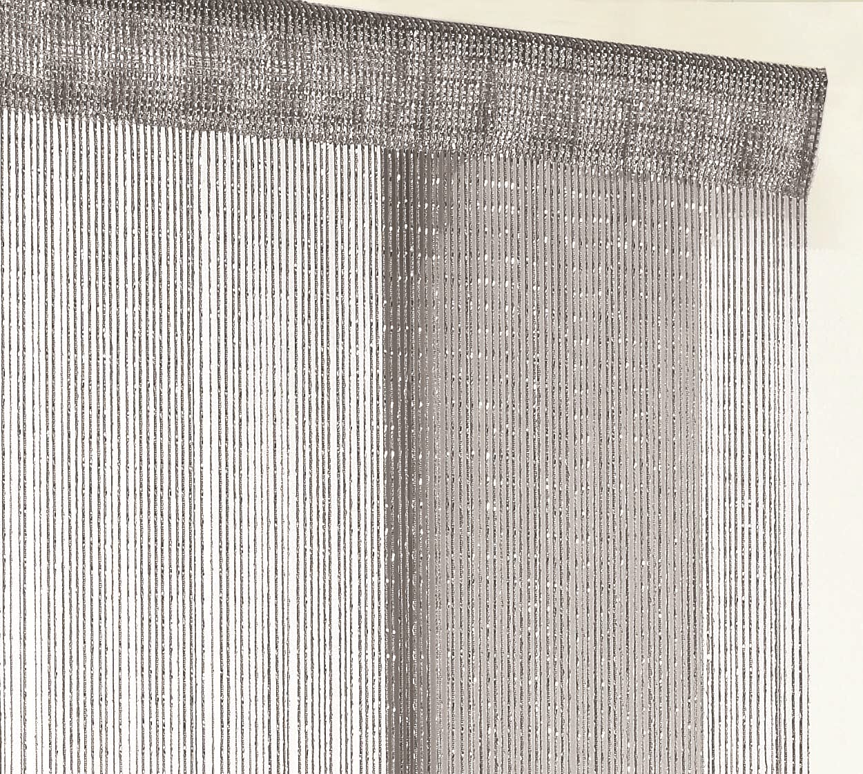 This luxury, modern and glitter string panel in grey can create privacy between rooms, can also help to keep insects out during the summer months. It is suitable for windows or doors and perfect for adding a splash of colour to your home. It has slot top enables curtain to be hung on a net curtain wire, rod or tension rod. It is wipe clean only. Material is 100% polyester.