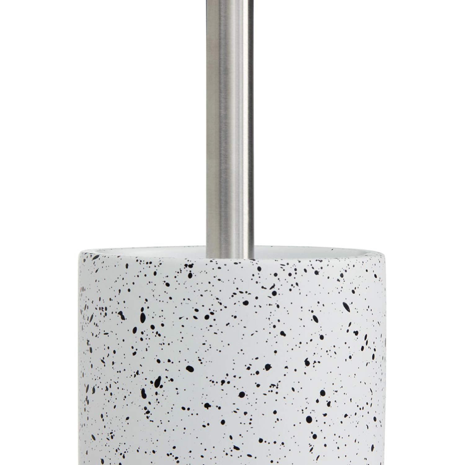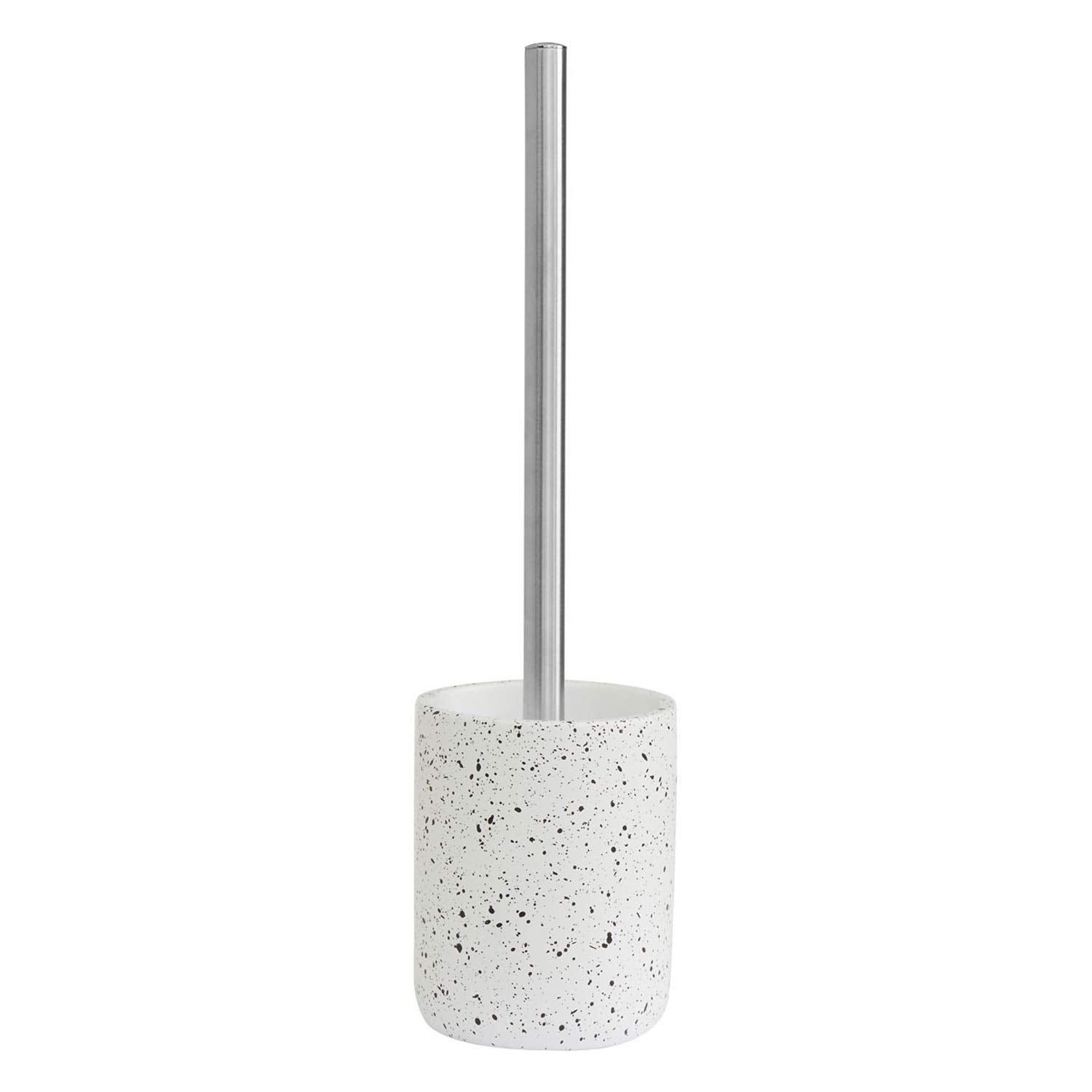 This discreet toilet holder will add a soft accent to the bathroom with its white color and black speckled pattern. The brush with thick bristles is designed to conceal inside the holder when not in use. The brush has a tall handle in the metallic silver coating which prevents rust and scratches and contributes to the set's decorative visual appeal