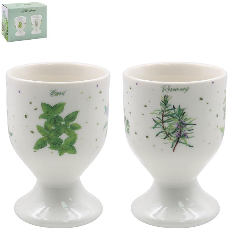 Green Herbs Garden Print 2pcs Ceramic Egg Cups