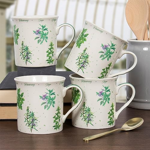 Green Herbs Garden Print 4pcs Fine China Mug 230m