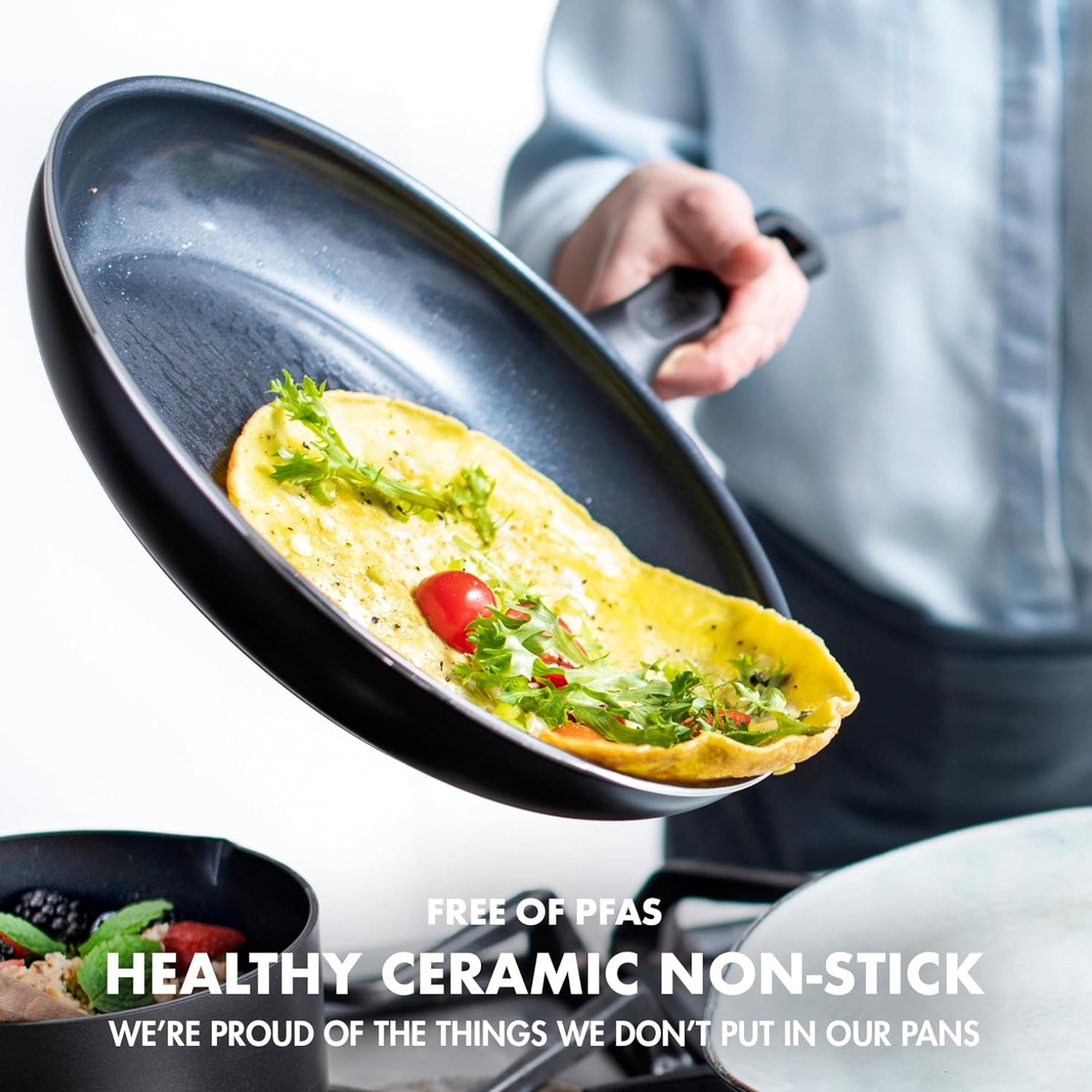 - Offering easy cleaning, this pan set is dishwasher safe and is also PFAS-free to ensure no harmful chemicals are released when cooking.