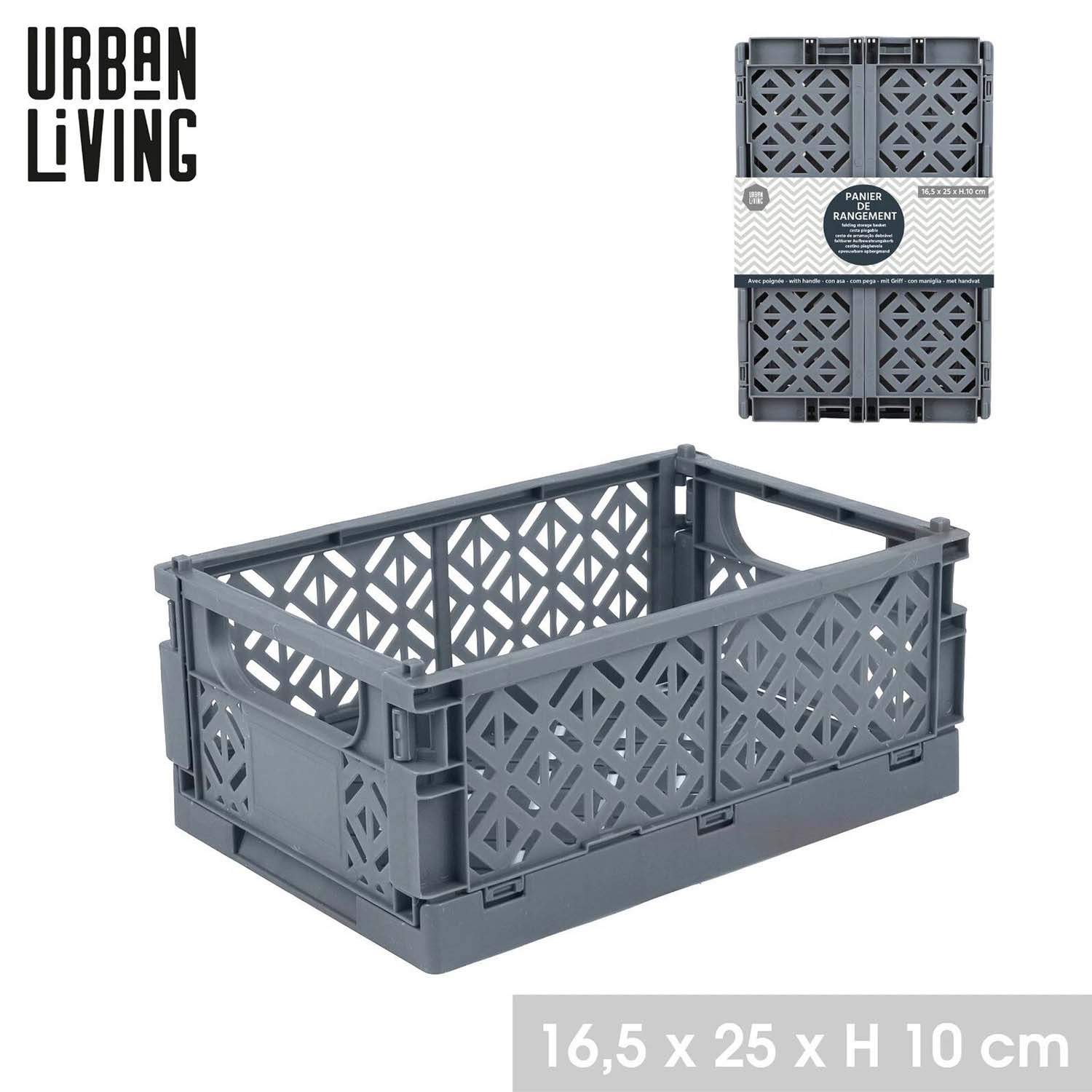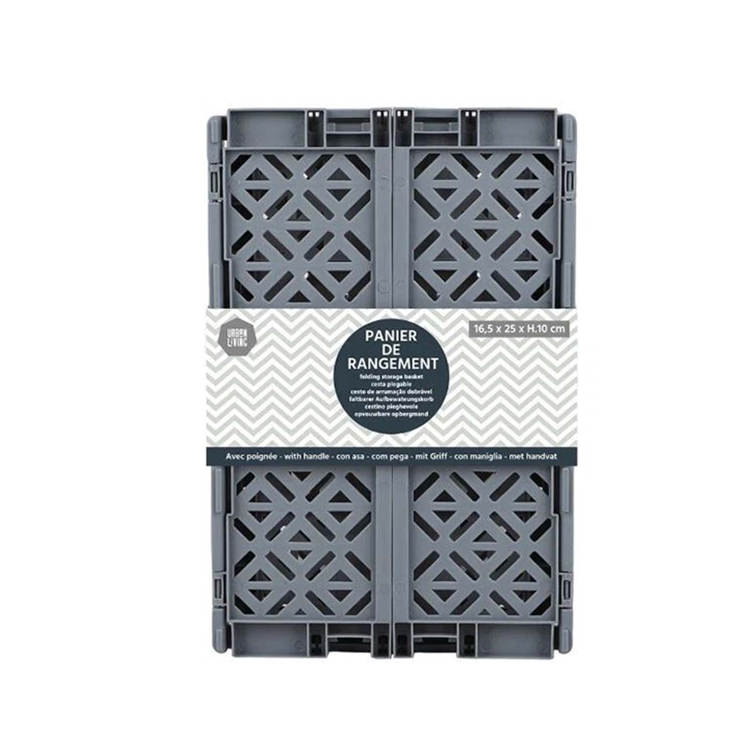 This Urban Living mini folding storage basket is a practical and stylish solution for all your organization needs. The durable grey plastic crate features an integrated handles for easy transport. Its stackable design makes it ideal for maximizing vertical storage in closets, kitchens, offices, or craft rooms.