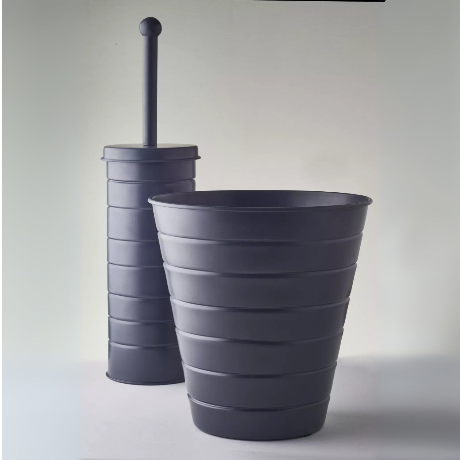 Grey Toilet Brush With Lid Holder & Bin Set