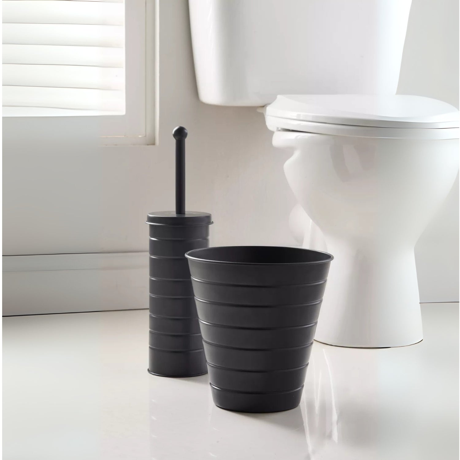 Add sleek functionality to your bathroom with this toilet brush and bin set. Both pieces are easy to clean and require no assembly. This matching set offers both style and practicality, making it ideal for any contemporary bathroom.