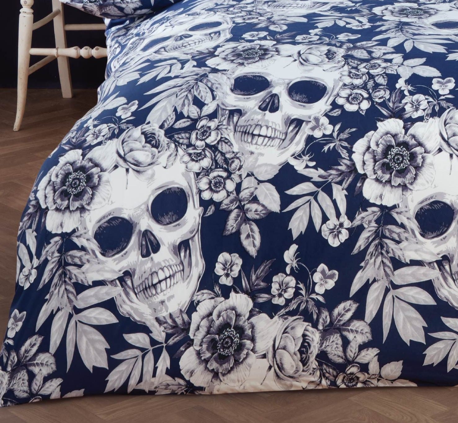 This luxury and fully reversible duvet cover set has gothic skulls design on it with different background colours. Material: 100% Polyester, it is machine washable. This set includes 1 x single duvet cover and 1 x pillowcase, duvet cover size is 135cm x 200cm (53" x 79") (Approx) and pillowcase size is 48cm x 74cm (19" x 29")(Approx).