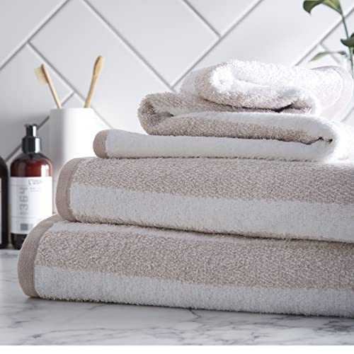 Henley Striped 100% Cotton Hand Towel - Natural & White