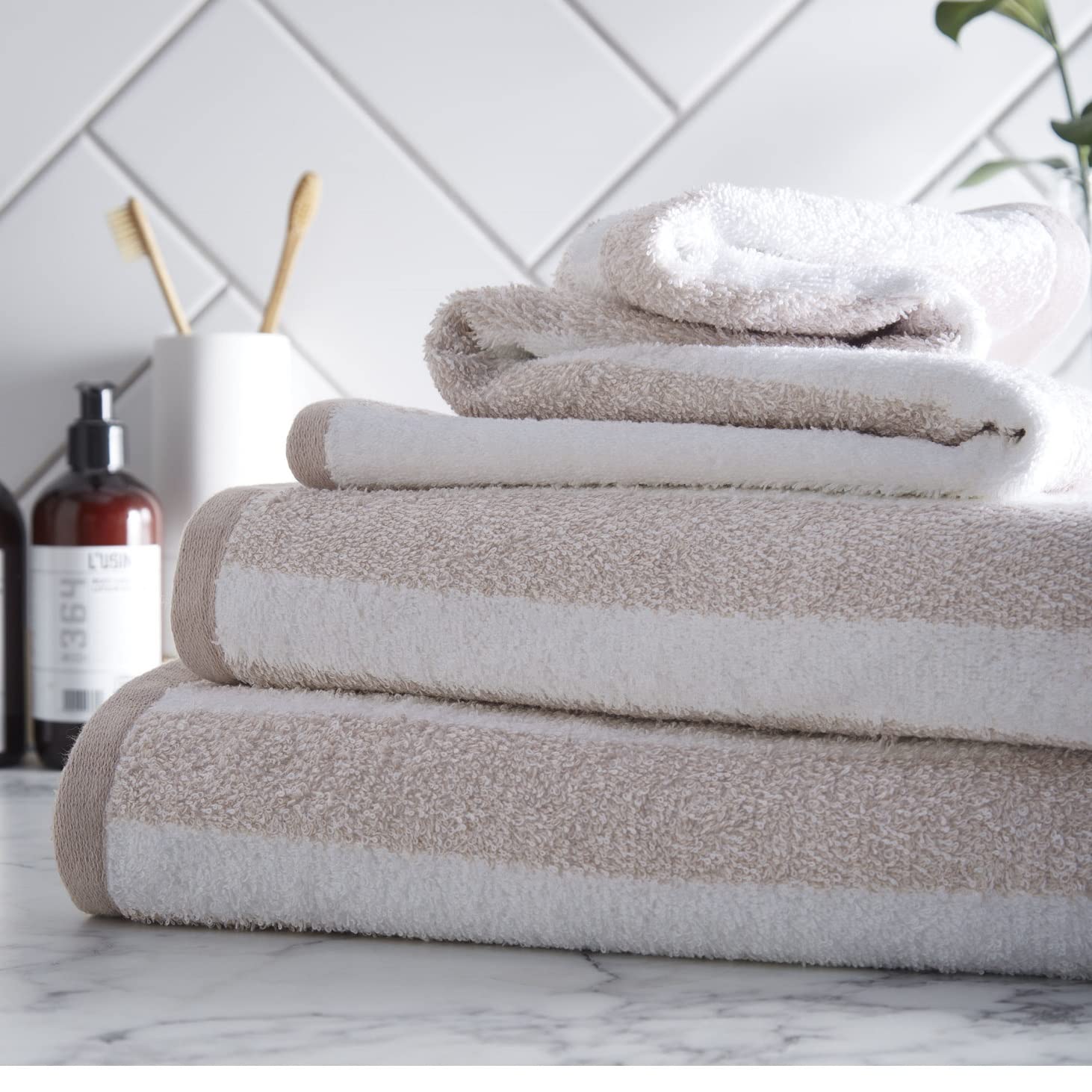 This luxurious towel is made from the finest 100% cotton. Our henley luxury towel is complimented by bold colours with a modern featured striped pattern carved into the towel. It is ultra soft and absorbent which can add some luxury to bath time. Material is 100% cotton and it is machine washable. This set has 1 x hand towel, towel size is 50cm x 85cm (20" x 33").