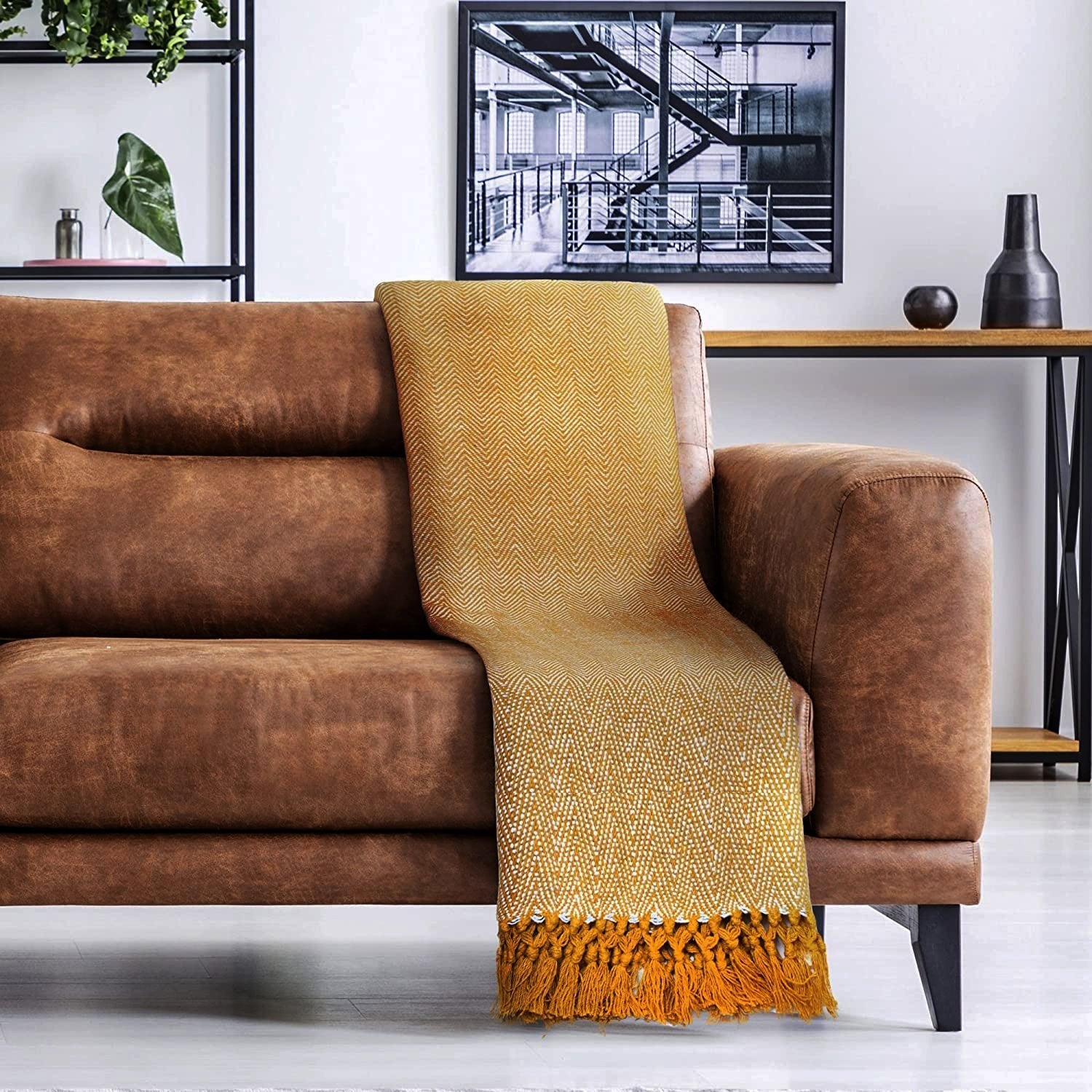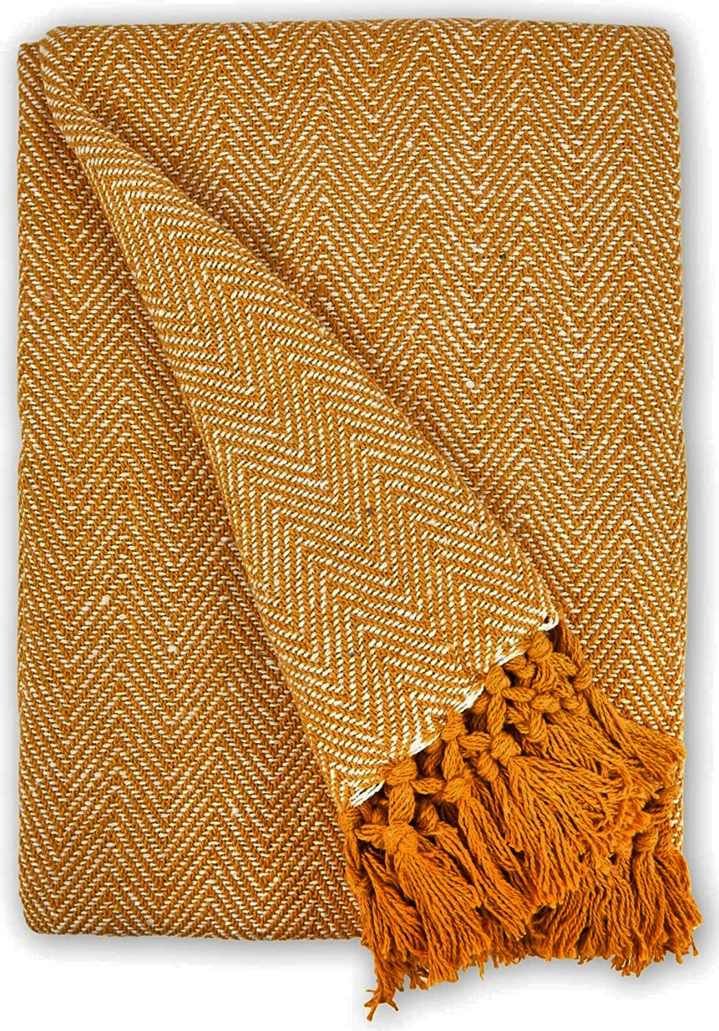 Herringbone Sofa Throw Ochre Mustard Yellow 50"x60"