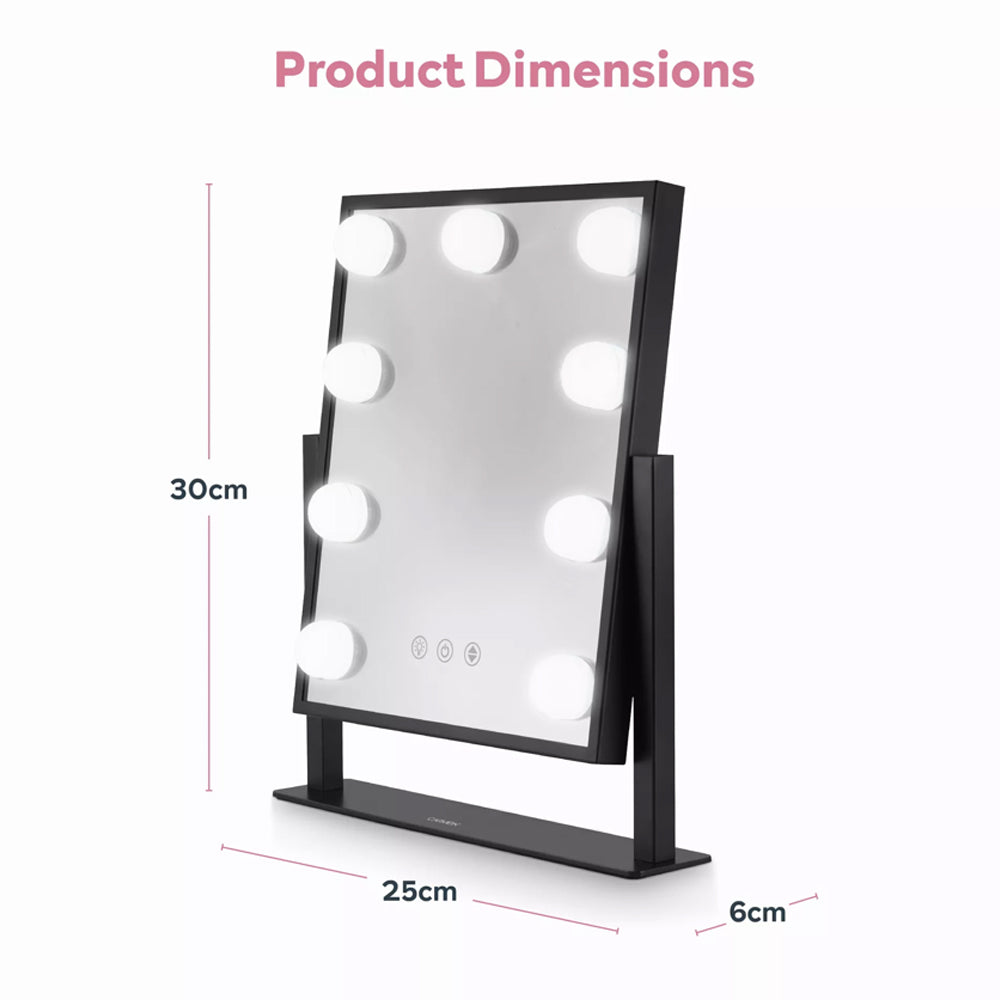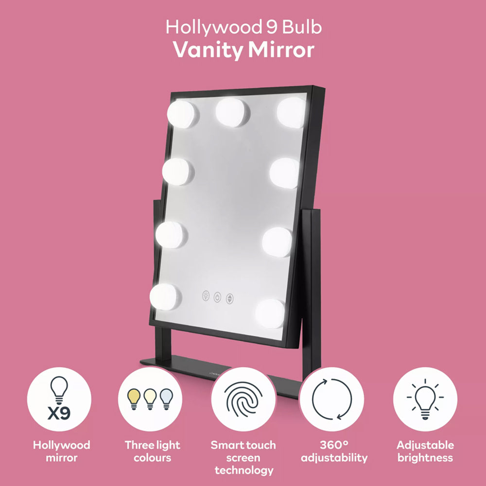 Bring glamour and practicality to your daily routine with the Hollywood 9 Bulb Vanity Makeup Mirror in Black. Designed to provide professional studio lighting, this stunning mirror combines elegance with functionality. Whether for personal use or as a thoughtful gift, the Hollywood 9 Bulb Vanity Mirror adds a touch of sophistication and luxury to any space.