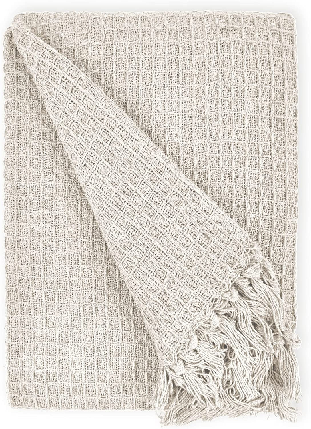 - Specially Woven Cotton Tassel Honeycomb Throw