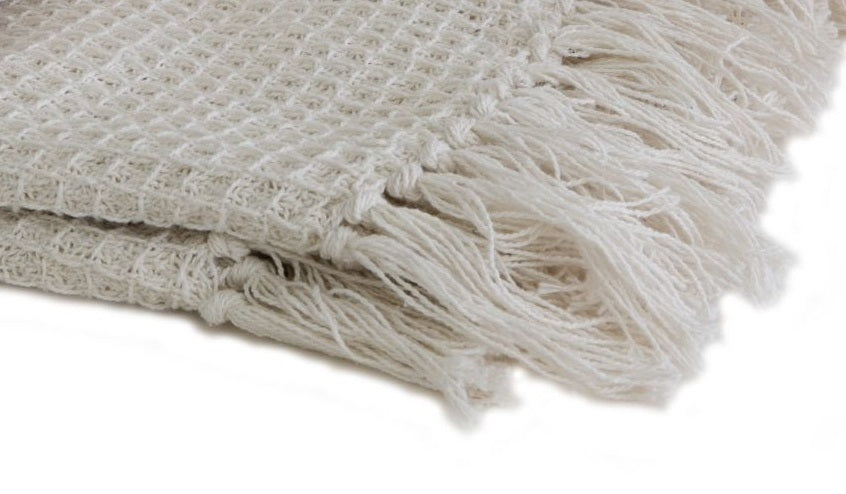 Honeycomb Waffle 100% Cotton Throw 50" x 60" - Ivory Cream