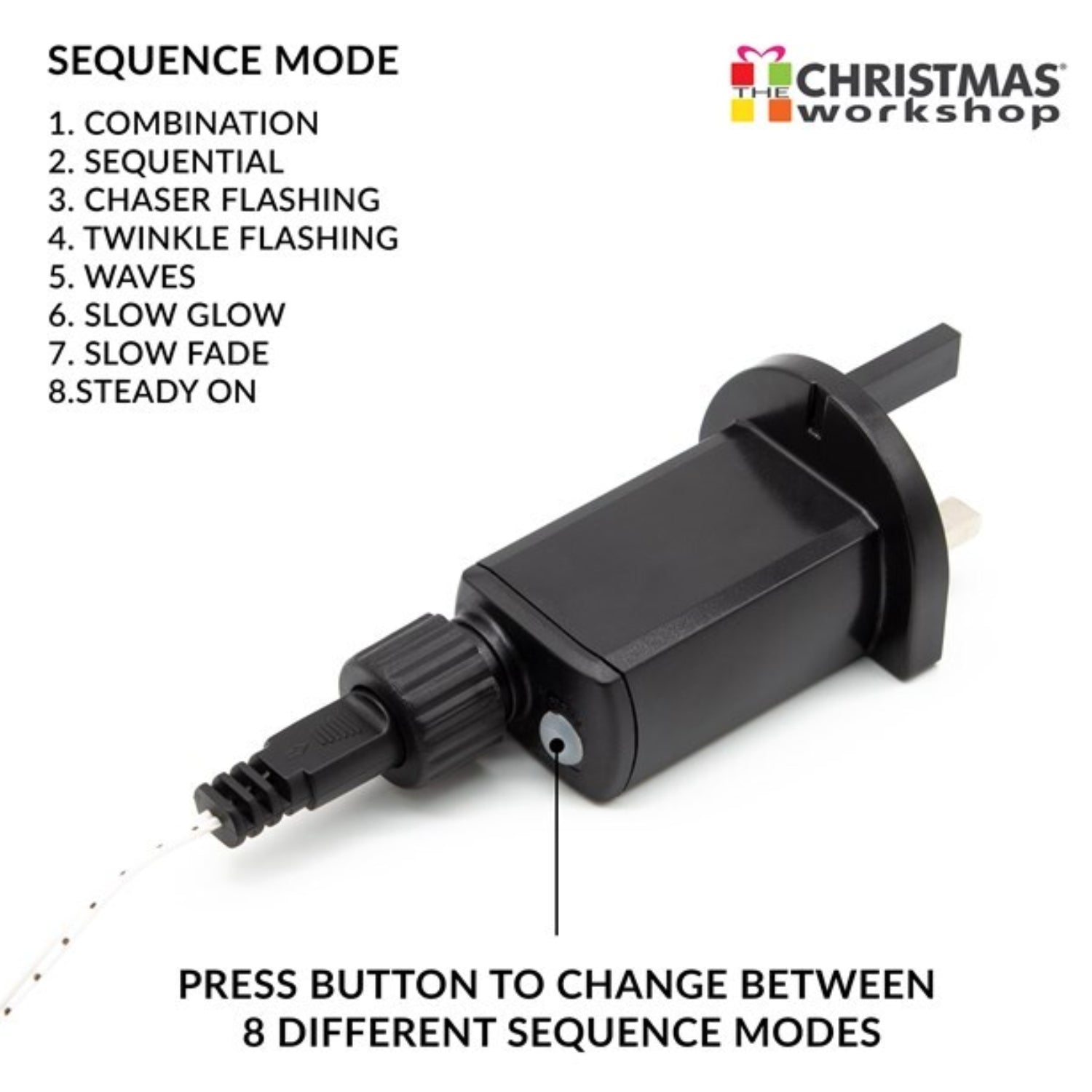 - Choose between the settings of combination, sequential, chaser flashing, twinkle flashing, waves, slow glow, slow fade and steady on, and create the perfect atmosphere for any occasion.