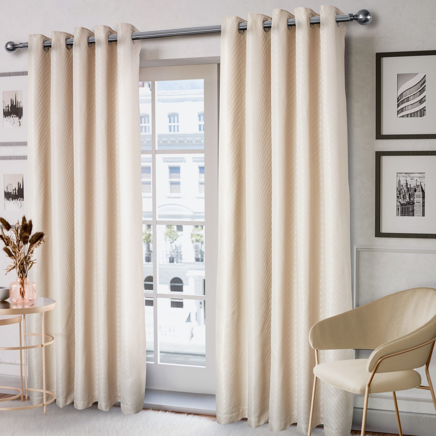 - Luxurious Jacquard Fully Lined Eyelet Ring Top Ready-Made Curtains