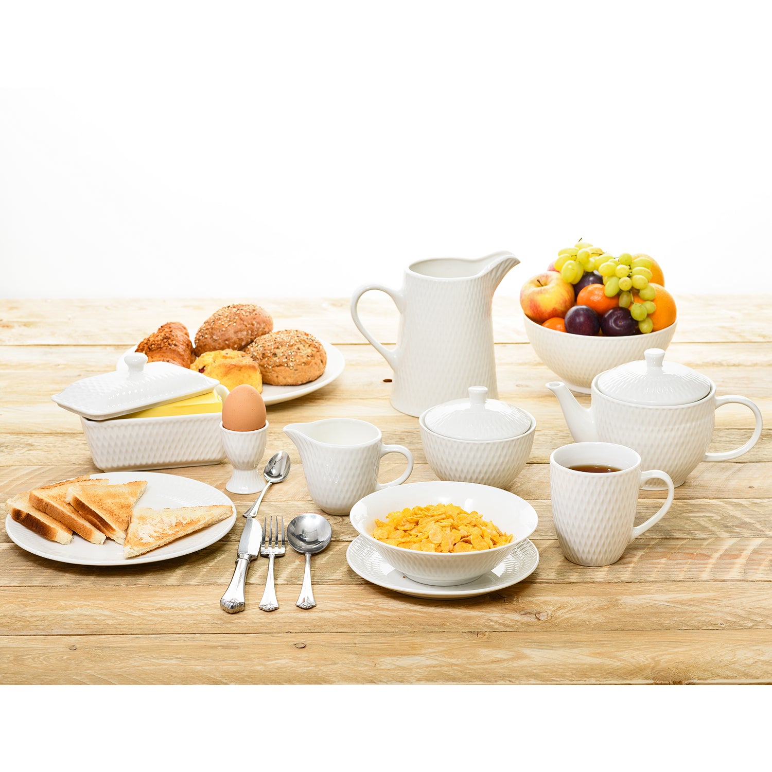 The Jewel range of tableware brings sophistication and timeless elegance to your dining experience. Crafted from high-quality porcelain, each piece in this collection features a unique, textured design reminiscent of faceted jewels.