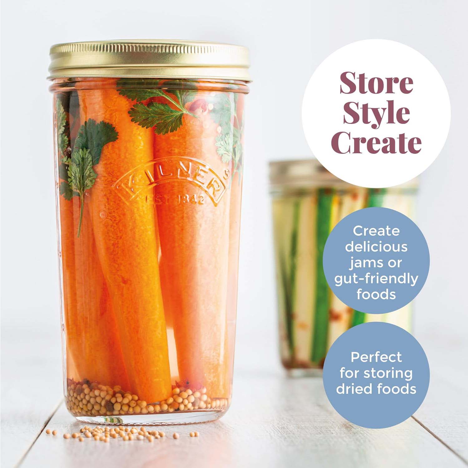 - 1L capacity ideal for preserving large fruits and vegetables, wide mouth for easy filling/decanting, and dishwasher safe for easy cleaning.