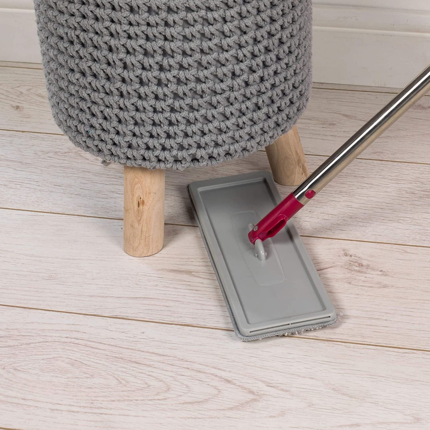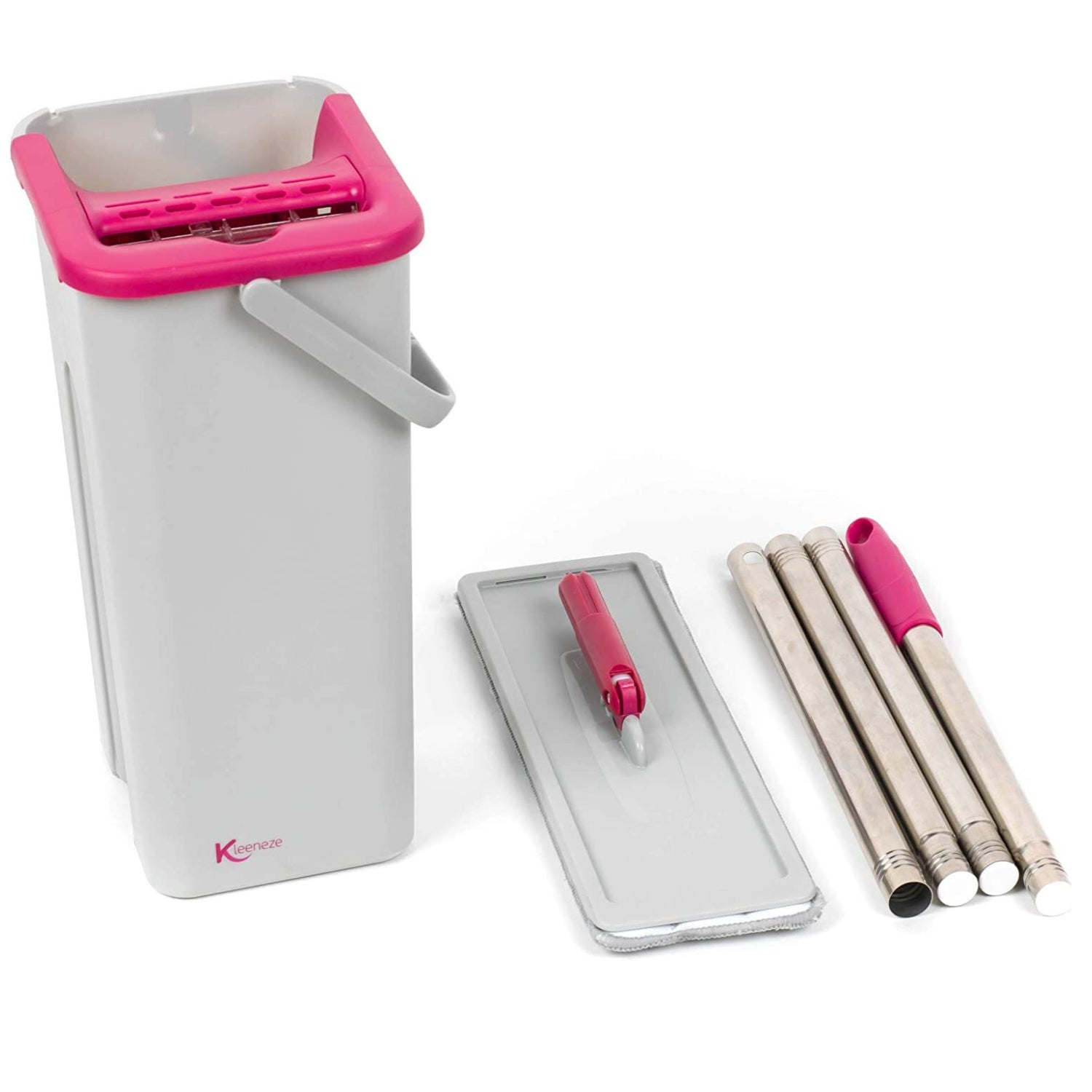- Clean a variety of floor surfaces effortlessly with this flat head mop and bucket set from Kleeneze, a stylish addition to any home.