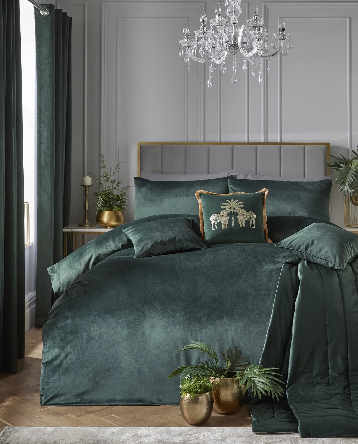 Laurence Llewelyn Bowen Velvet Double Duvet Cover Set - Montrose Green