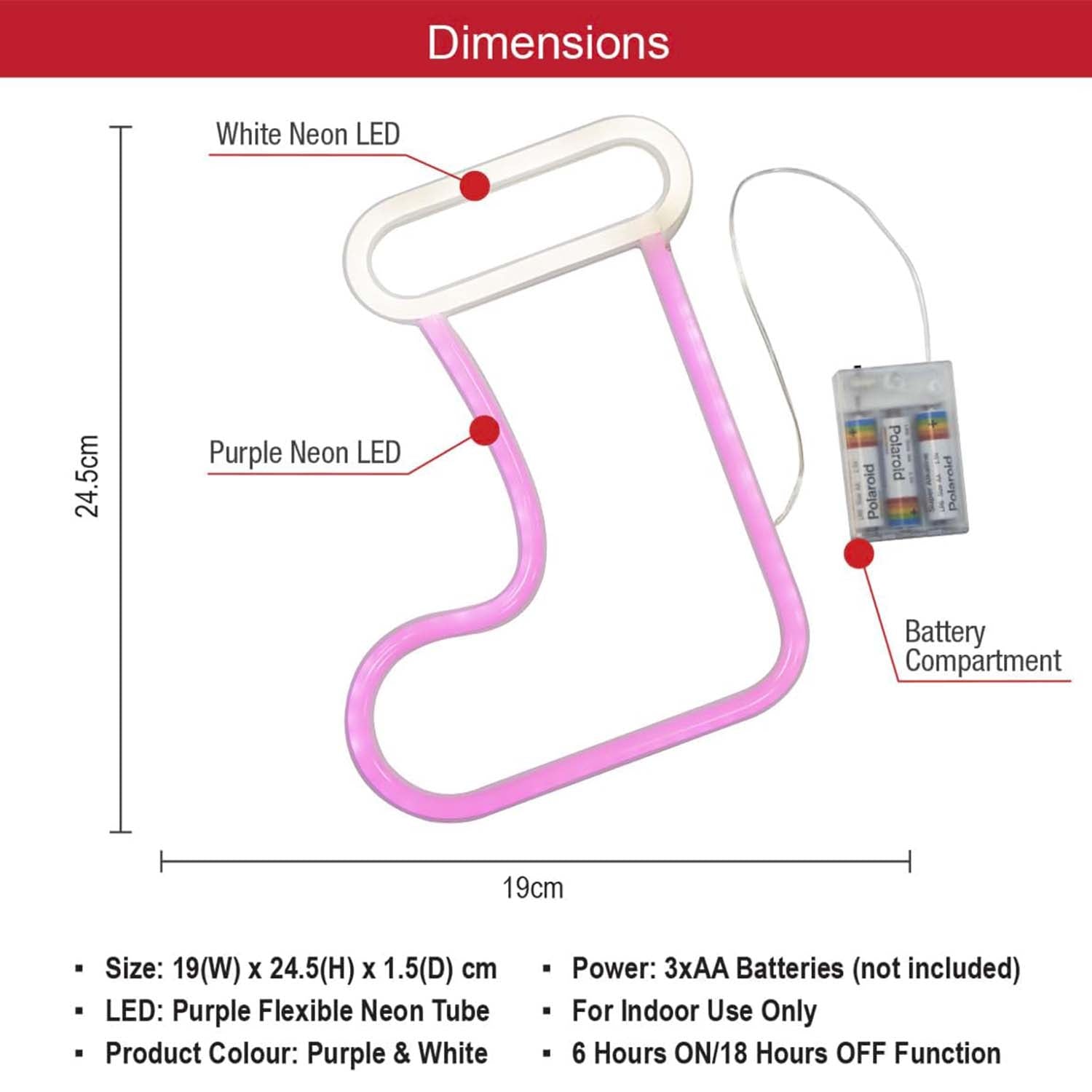 - This neon light only requires 3 AA batteries (not included).