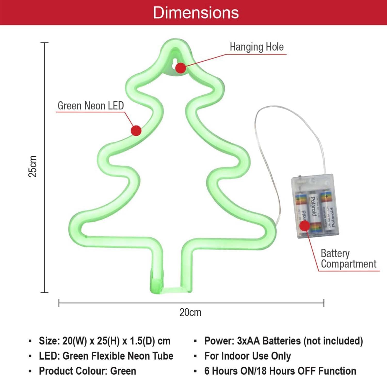 - This neon light only requires 3 AA batteries (not included).