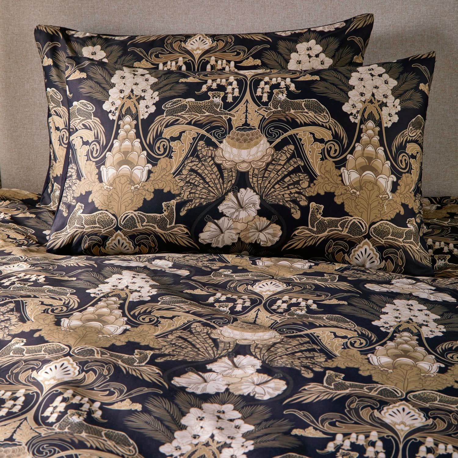 LLB Suburban Jungle Cats Duvet Cover Set, Double, Black & Gold