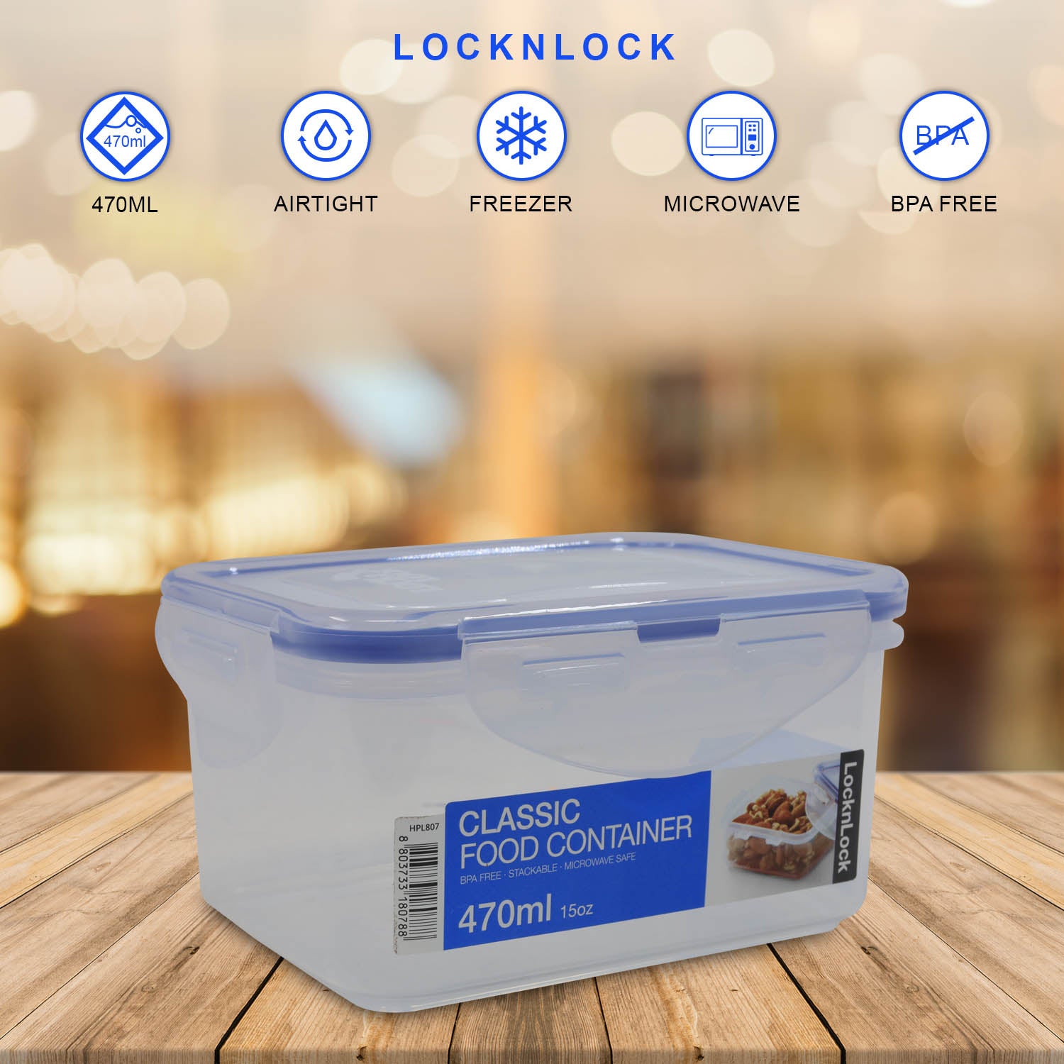 LockNLock 470ml Durable Rectangular Airtight Stackable Food Storage Container