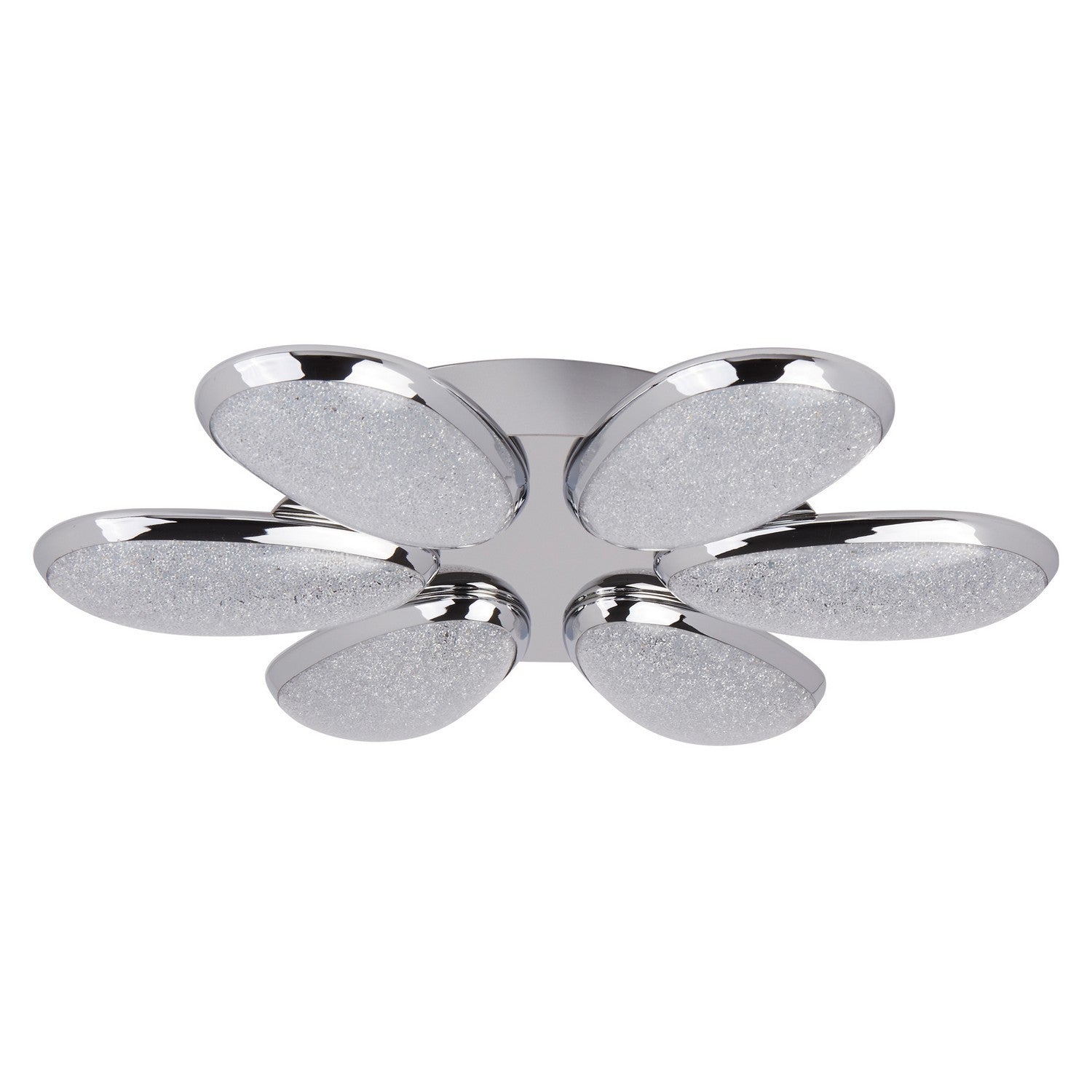 Featuring an eye-catching floral inspired design with 6 lights, in crushed ice effect glass and chrome. This creates a contemporary and stylish feel to the light. This light is idea for any modern living space, particularly dining rooms. LED's use up to 75% less energy and last up to 20 times longer than incandescent bulbs.