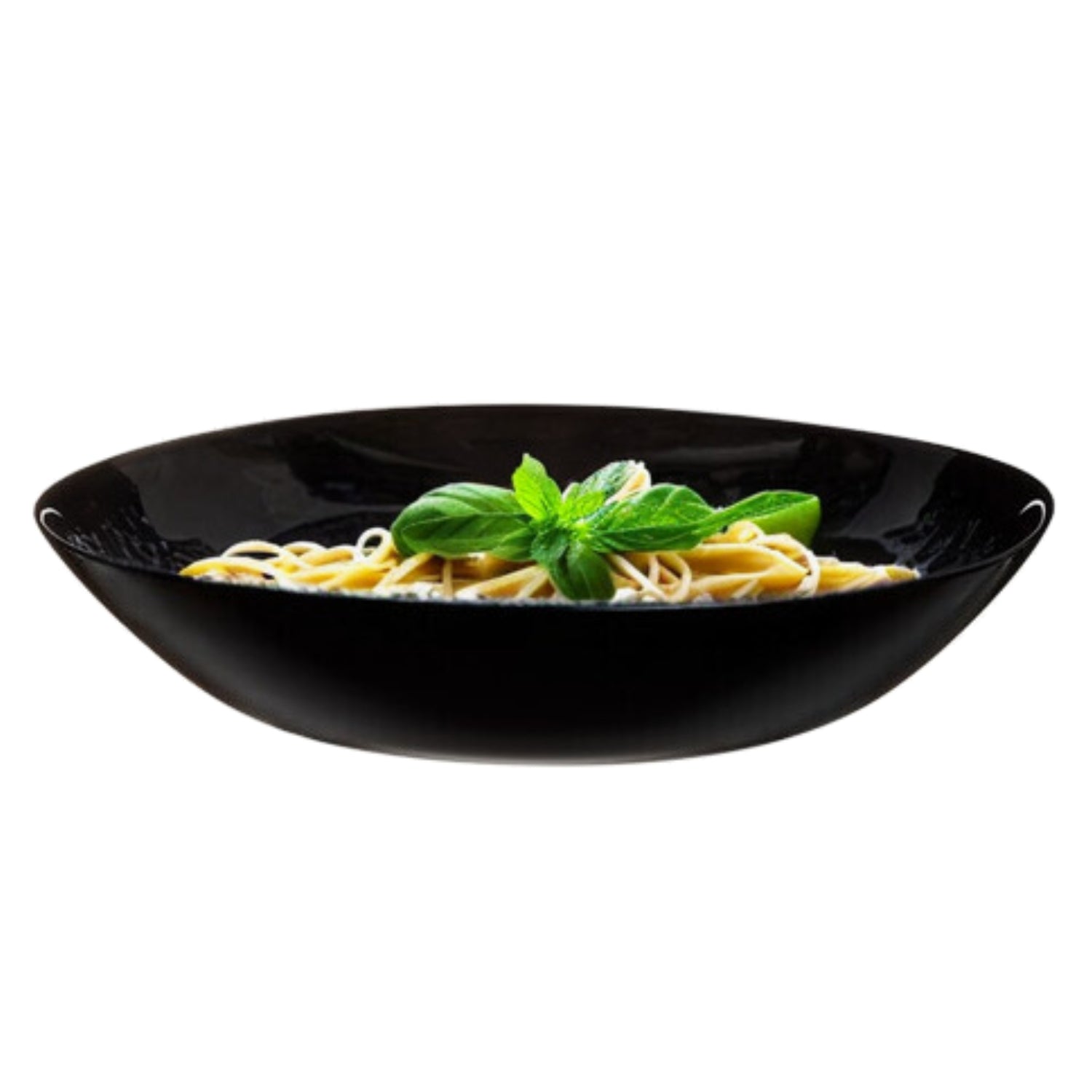 The Slate Soup Plate features a 20-cm diameter and is crafted from opal glass with a distinctive black and grey-flecked finish. This plate combines the refined look of slate with the lightweight and durable properties of opal glass. Its sophisticated design makes it a versatile choice for both everyday meals and special occasions.