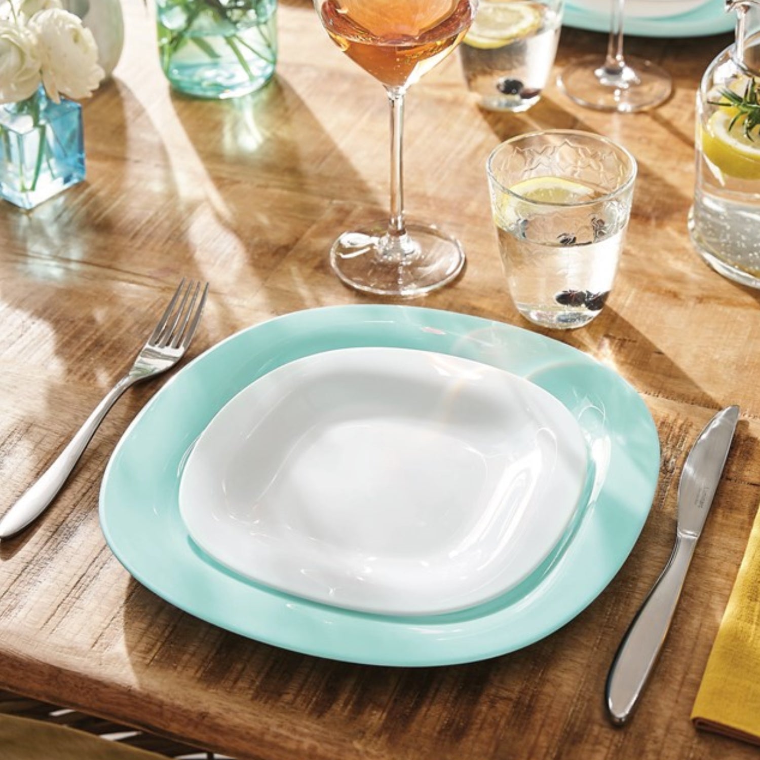 This Luminarc Carine 3-piece plate set includes 1 dinner plate, 1 soup plate, and 1 side plate, all crafted from durable opal glass in a square shape with a clean white finish. Microwave and dishwasher safe, perfect for daily use and modern minimalist kitchens.