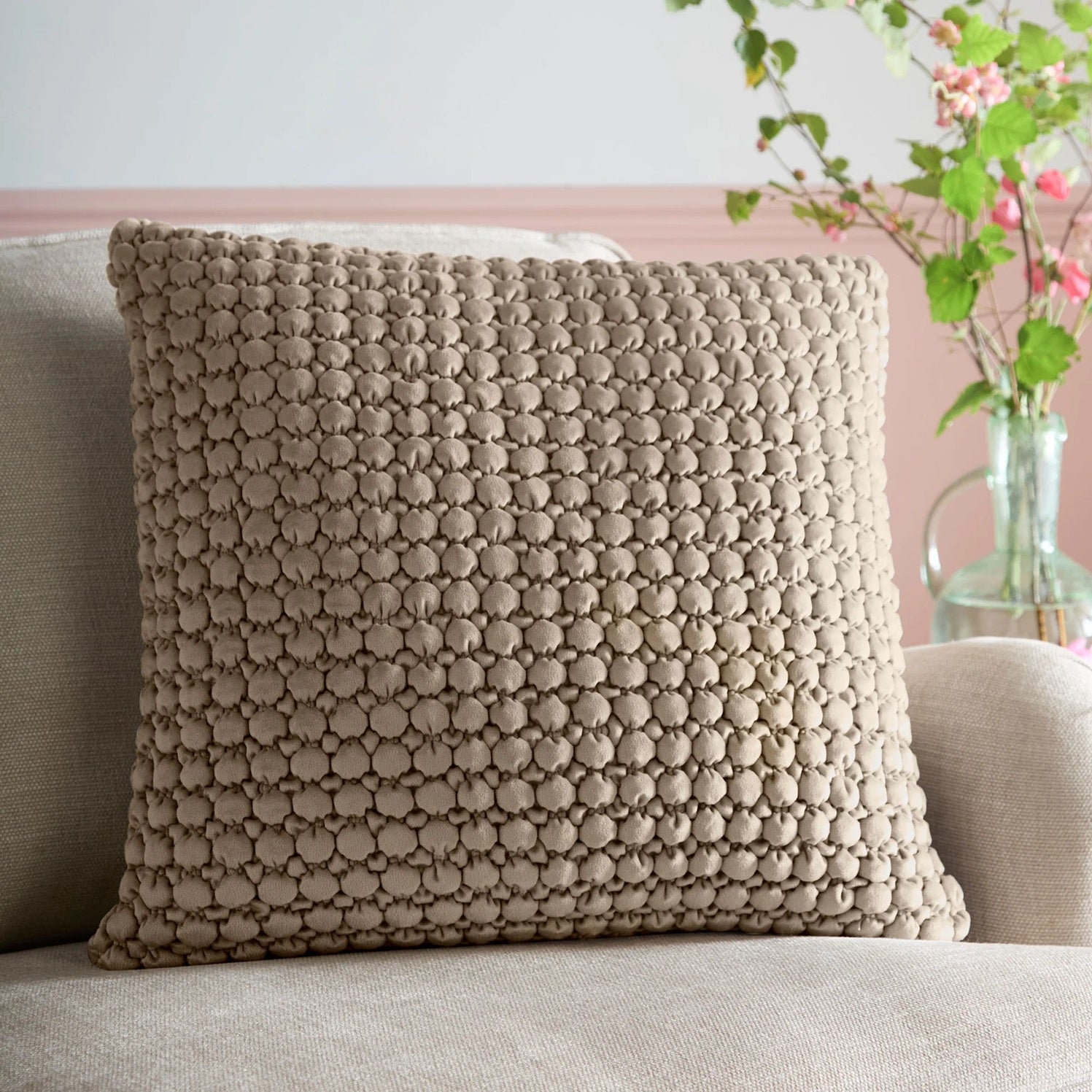 Luxurious Quilted Velvet Bobble Cushion Cover 55x55cm Natural