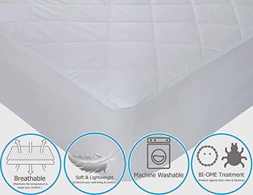 Every night, while at sleep, the body releases skin flakes and body fluids that accumulate in a mattress. This mattress protector is an antimicrobial barrier between you and the mattress. It draws moisture away from skin to help balance body temperature. Protector fabric retains its natural softness to give you an extra luxury. It is capable of withstanding wear and tear or decay, a durable fabric, able to perform or compete over a long period, as by avoiding and overcoming damages to your mattress. It can be fit on most of the mattresses up to 30cm. Material is Polyester, it is machine washable.