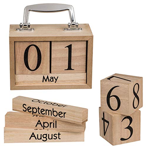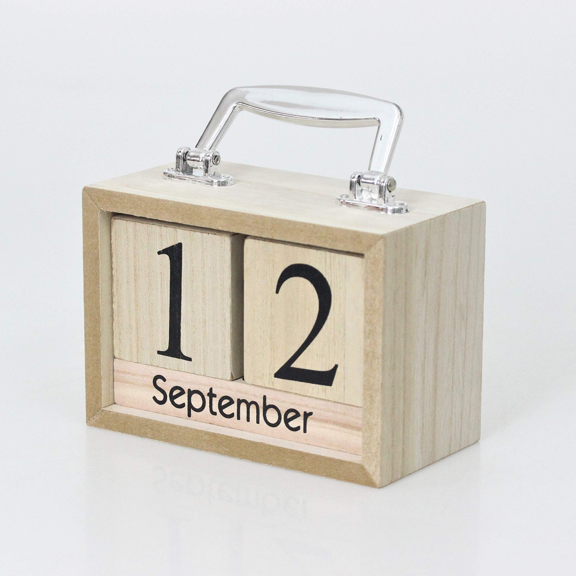 Natural Wooden Coloured Suitcase Shaped Perpetual Calendar
