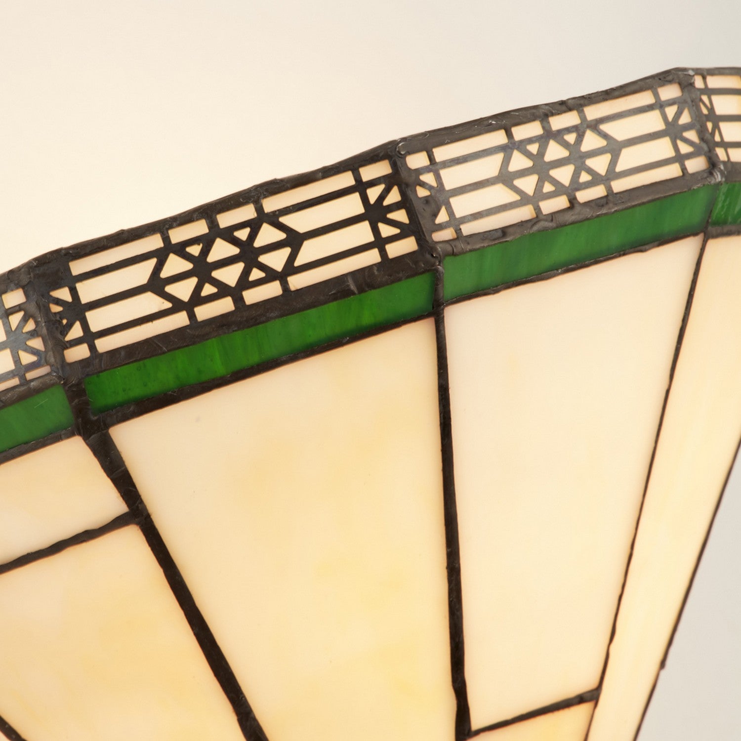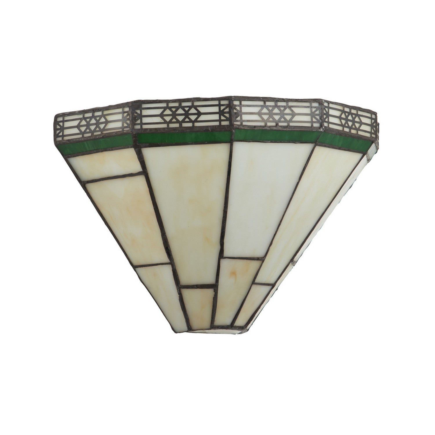Transport yourself to the 1920's with this New York antique brass and Tiffany stained glass wall light. The ornate upward-facing shade is handmade with stained Tiffany-style champagne glass, and the antique brass finish gives the fitting and shade a beautiful old-fashioned look.