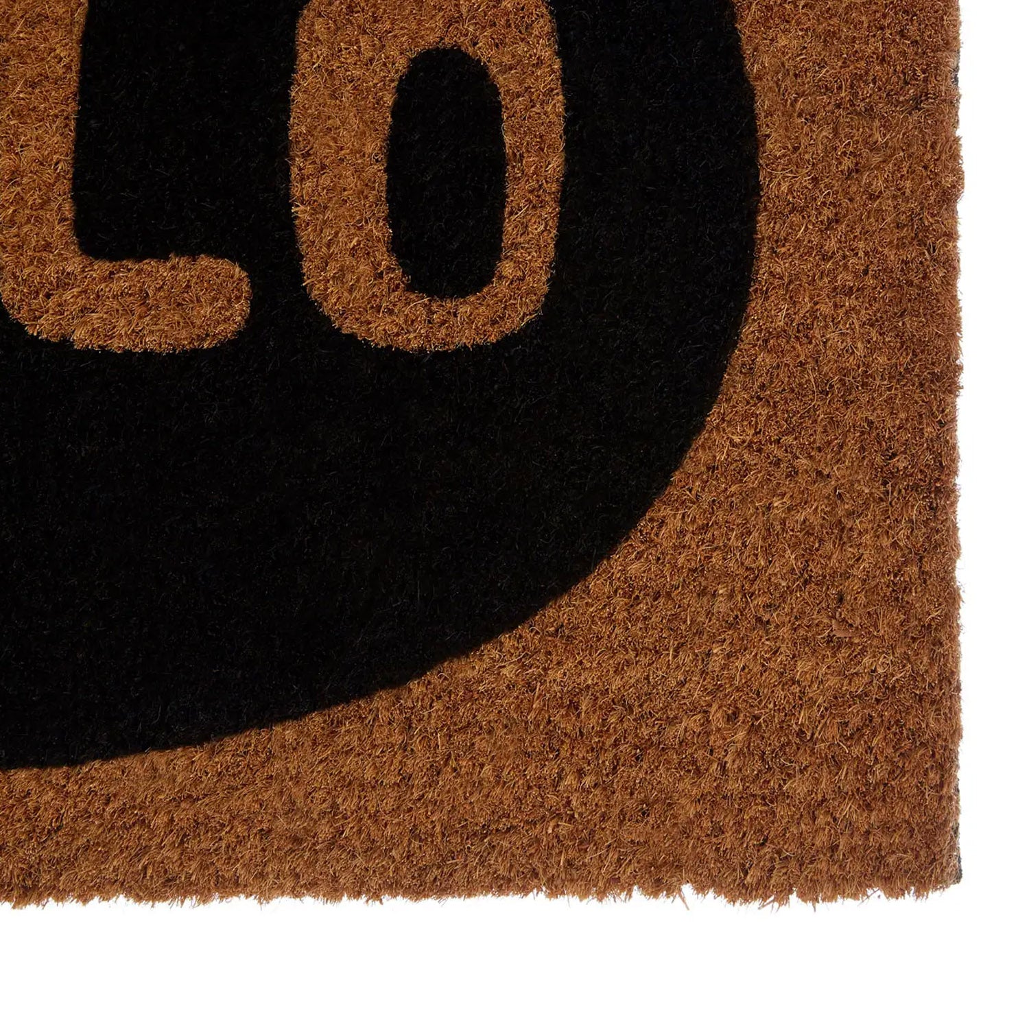 Ensure no dirt is trailed through your home by using our durable 'hello' doormat that features robust coir for tough cleaning. A PVC back will protect your floor when you are using the doormat. The design features natural coir and a black speech bubble with word 'hello' detail in the middle, so it will look fantastic at your front or back door. Suitable for everyday use, you can welcome everyone into your home, but ensure they wipe clean their footwear first so you don't need to be following everyone with a brush.