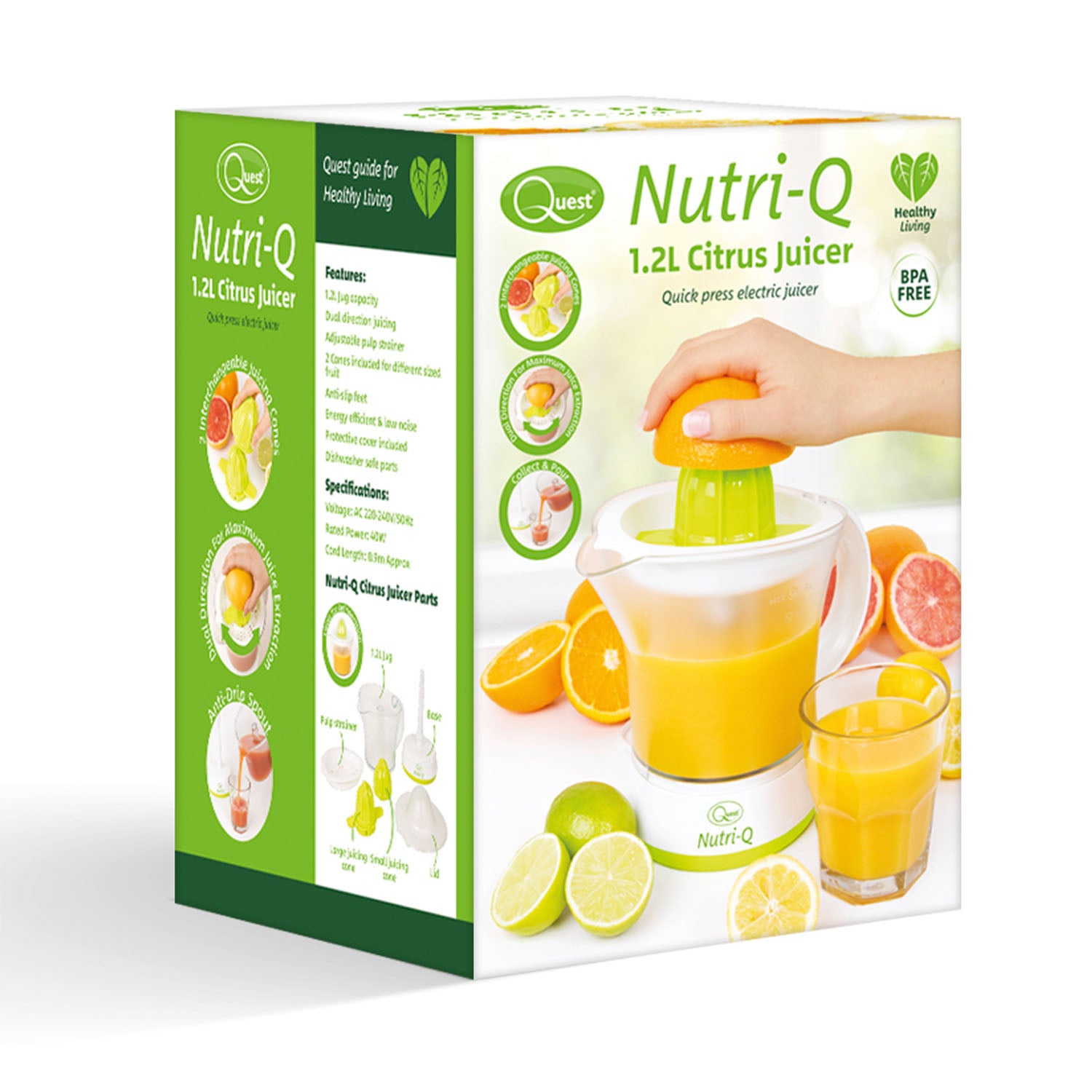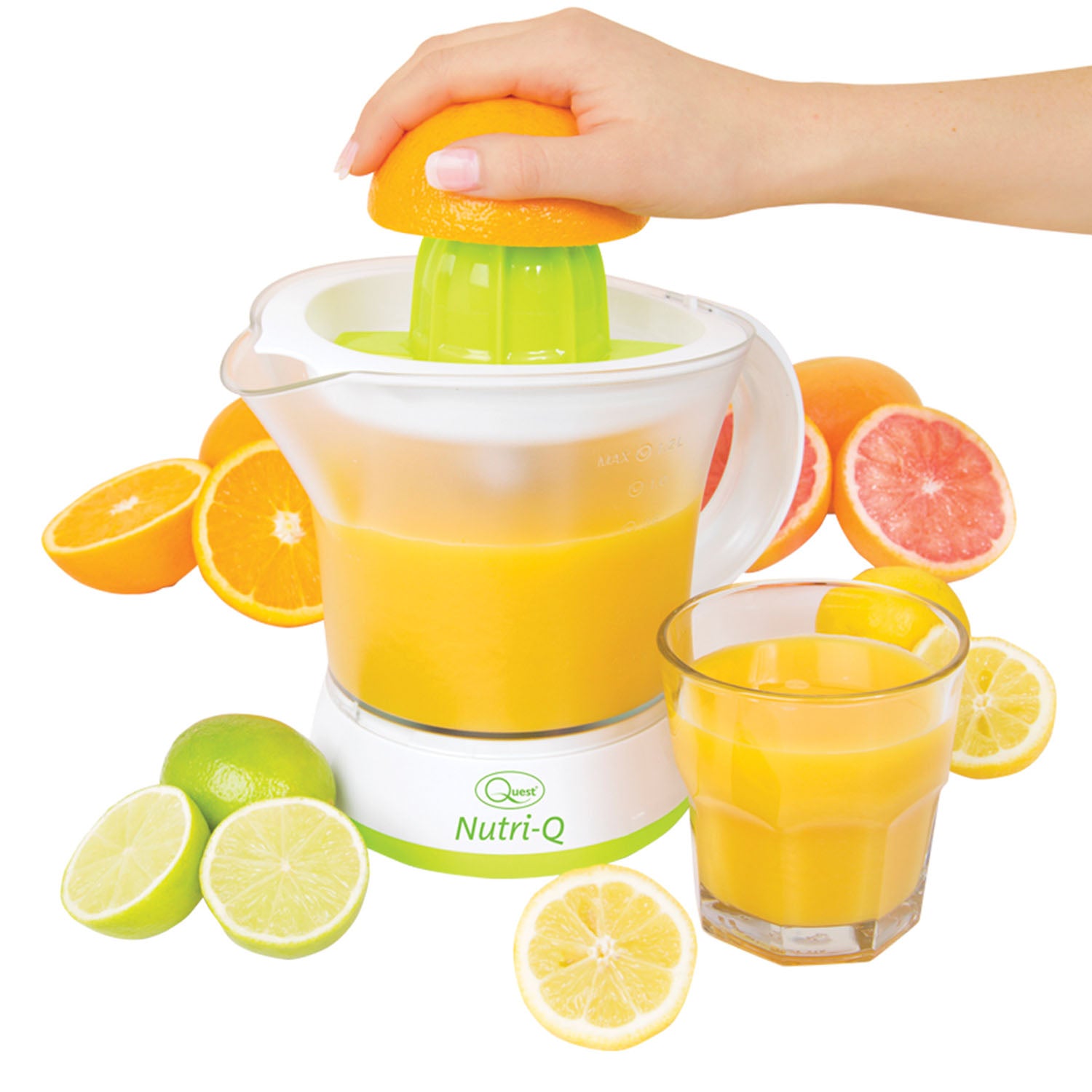Prepare healthy drinks with ease with Quest Nutri-Q Electric Fruit Juicer. With 2 different size juicing cones for different size fruits and has up to 1.2-liter capacity. Ideal for drinks, smoothies and cocktails.