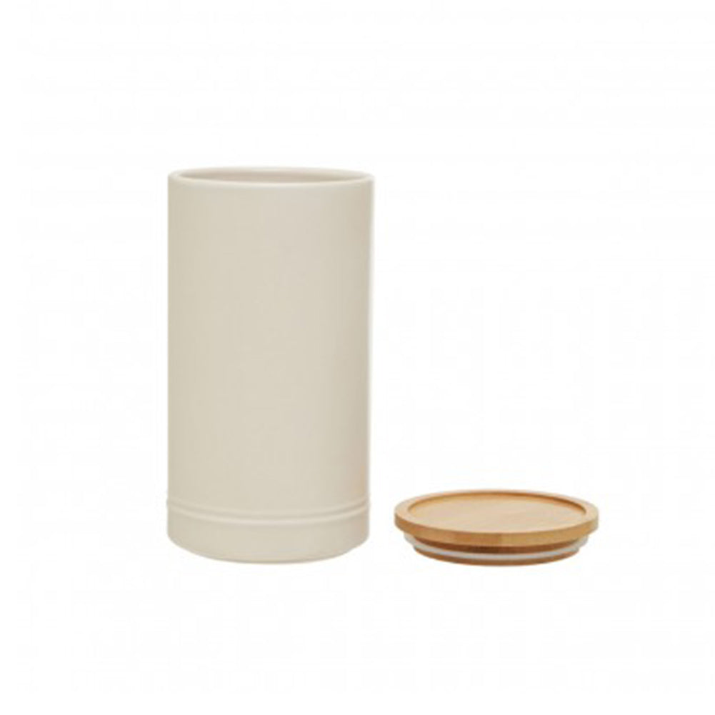 The pack of 2 Fenwick storage canisters in trendy grey and cream finish will make a sophisticated addition to the shelf unit with its understated design. The wooden lid of this canister sits neatly on top of it with a silicone sealing to keep the contents airtight.