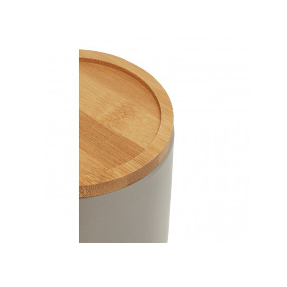 This pack of 2 Fenwick storage canisters in trendy black and grey finish will make a sophisticated addition to the shelf unit with its understated design. The wooden lid of this canister sits neatly on top of it with a silicone sealing to keep the contents airtight.