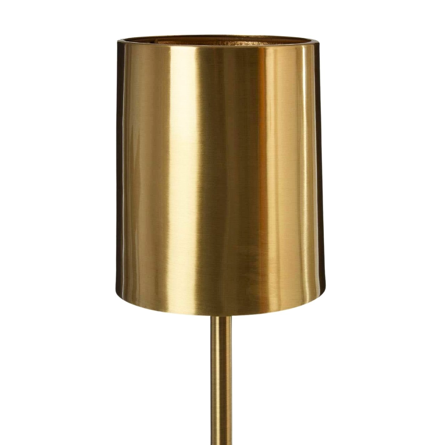 - Cylindrical brushed brass shade and stand