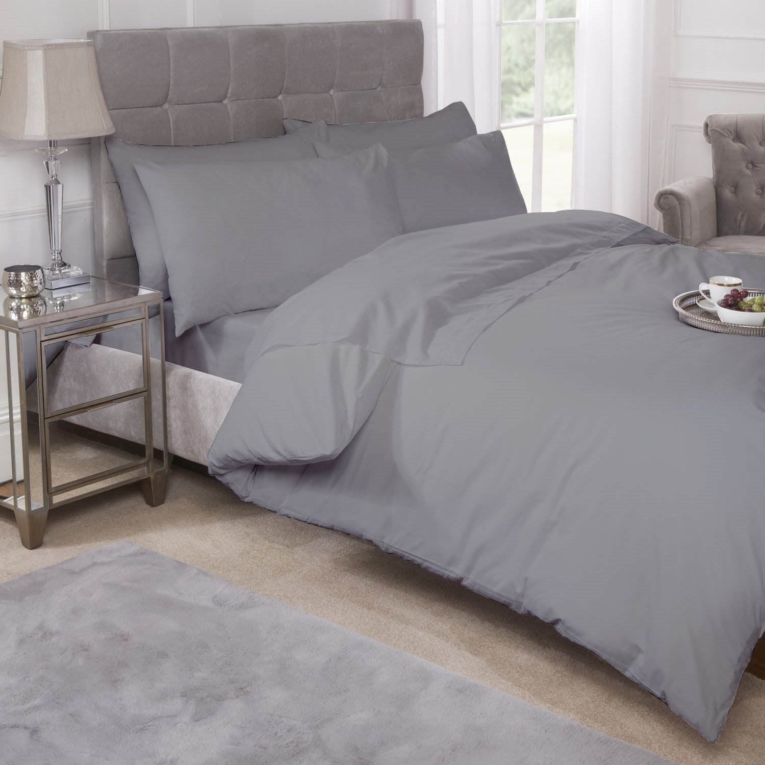 Percale Cotton Fitted Sheet Easy Care Non-Iron, Double, Silver Grey