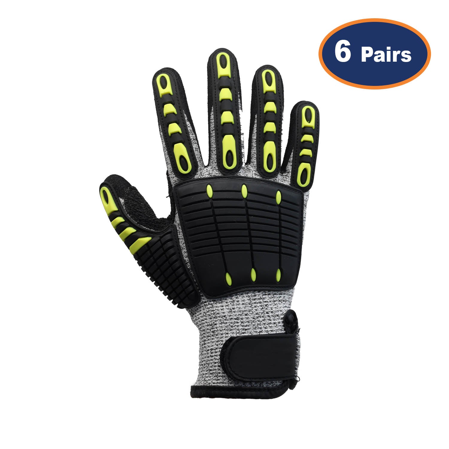 6Pcs Large Size Black Anti Impact Cut Resistant Work Glove