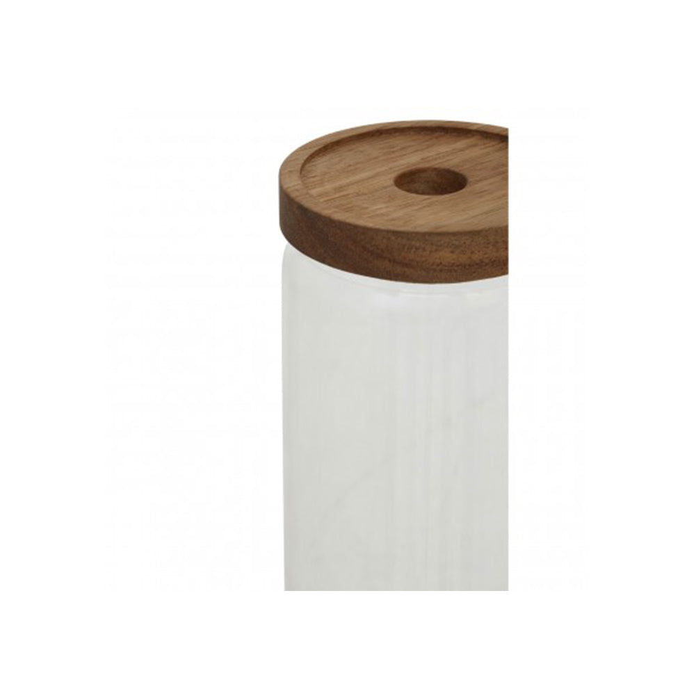 - Simple and sturdy, the Freska jar is a combination of clear glass and a wooden lid.