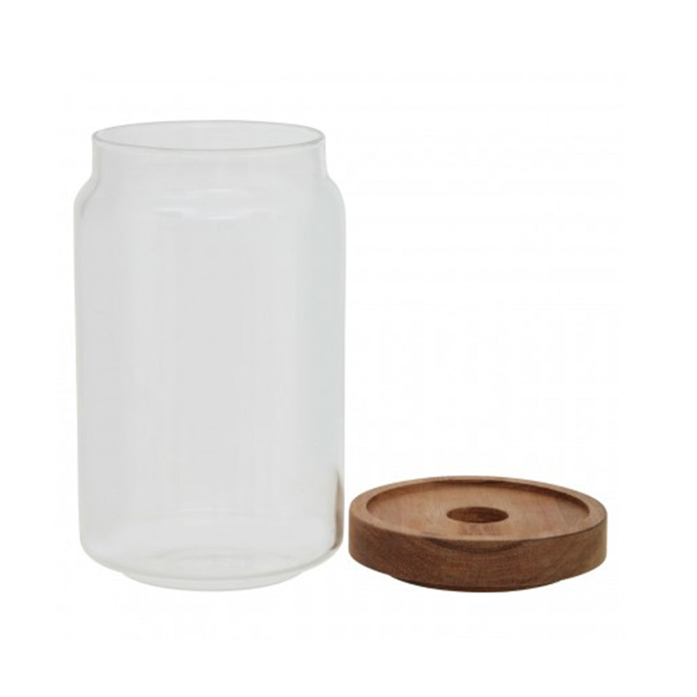 - The Freska jar is a combination of clear glass and wood.