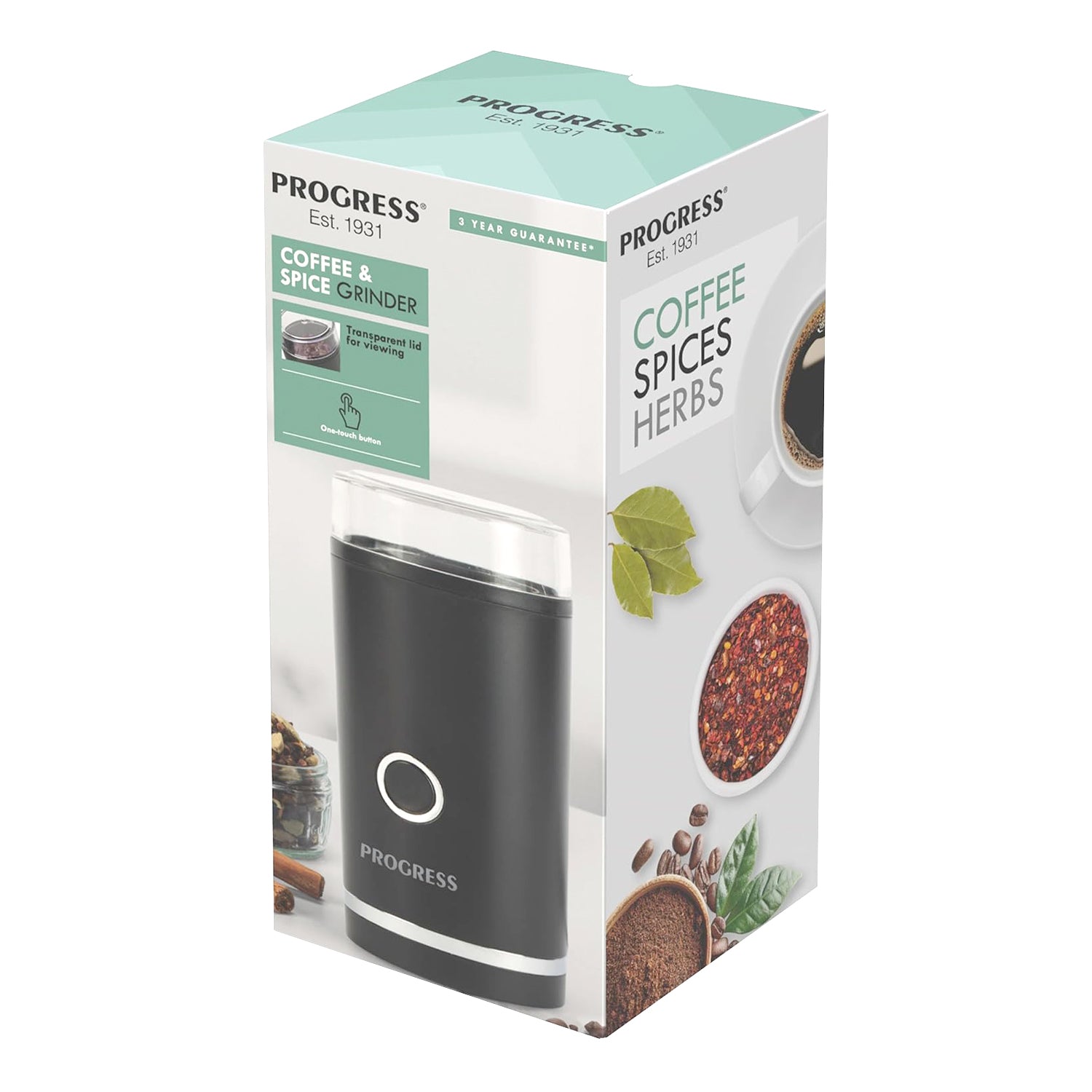 - This Progress Coffee and Spice Grinder effortlessly grinds coffee beans, herbs, and spices so you can enjoy fragrant food and drinks.