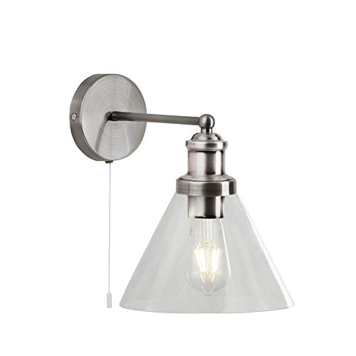 Perfectly suited above bedside tables or a kitchen space, the Pyramid Wall light is a classic design with a modern twist. Designed with a clear glass shade and a satin silver finish. This product is a great choice for anyone wanting to update their interior.