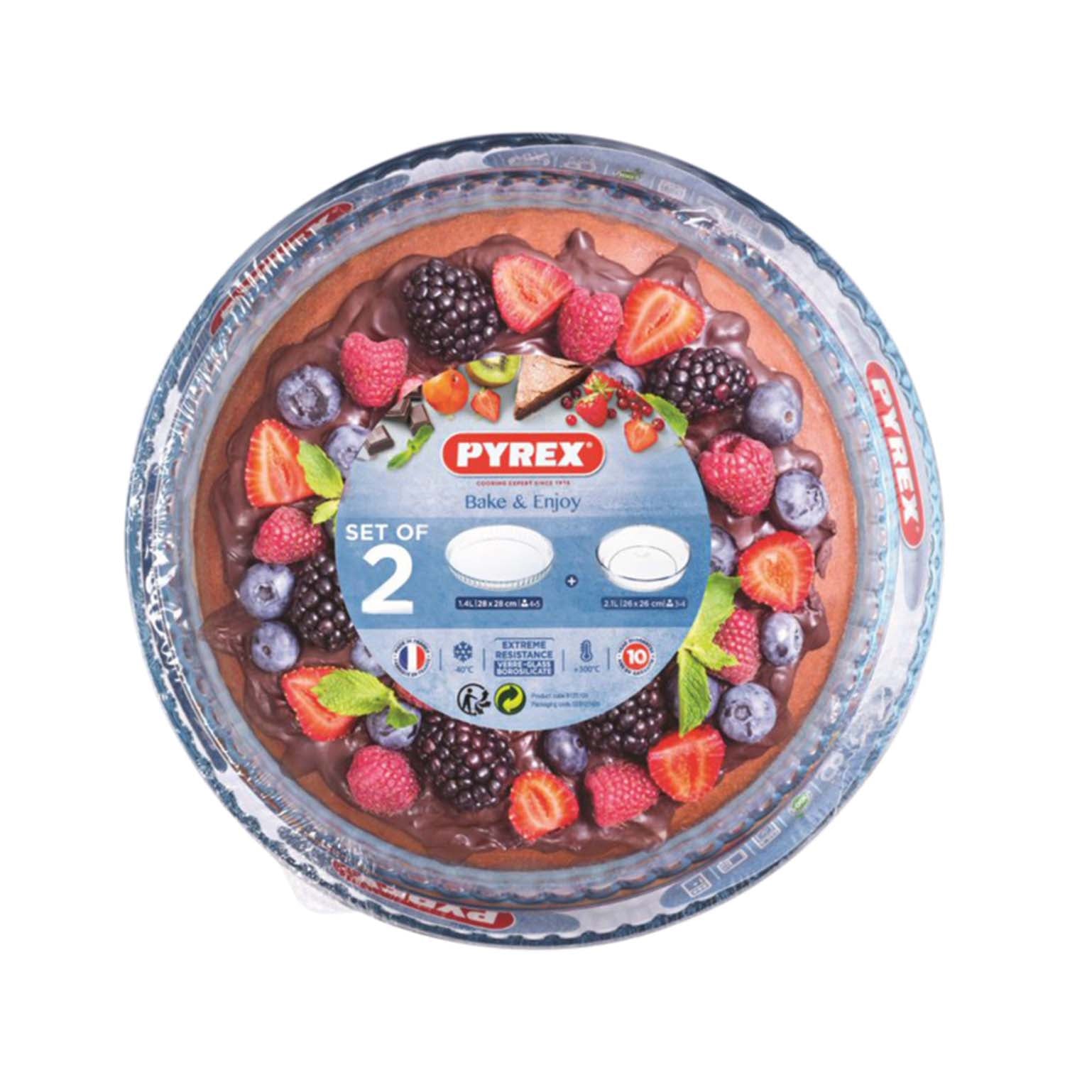 Pyrex 2Pc Clear Round Glass 28cm & 26cm Cake Pan Set
