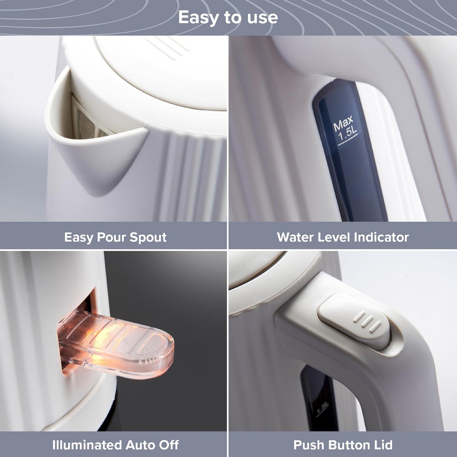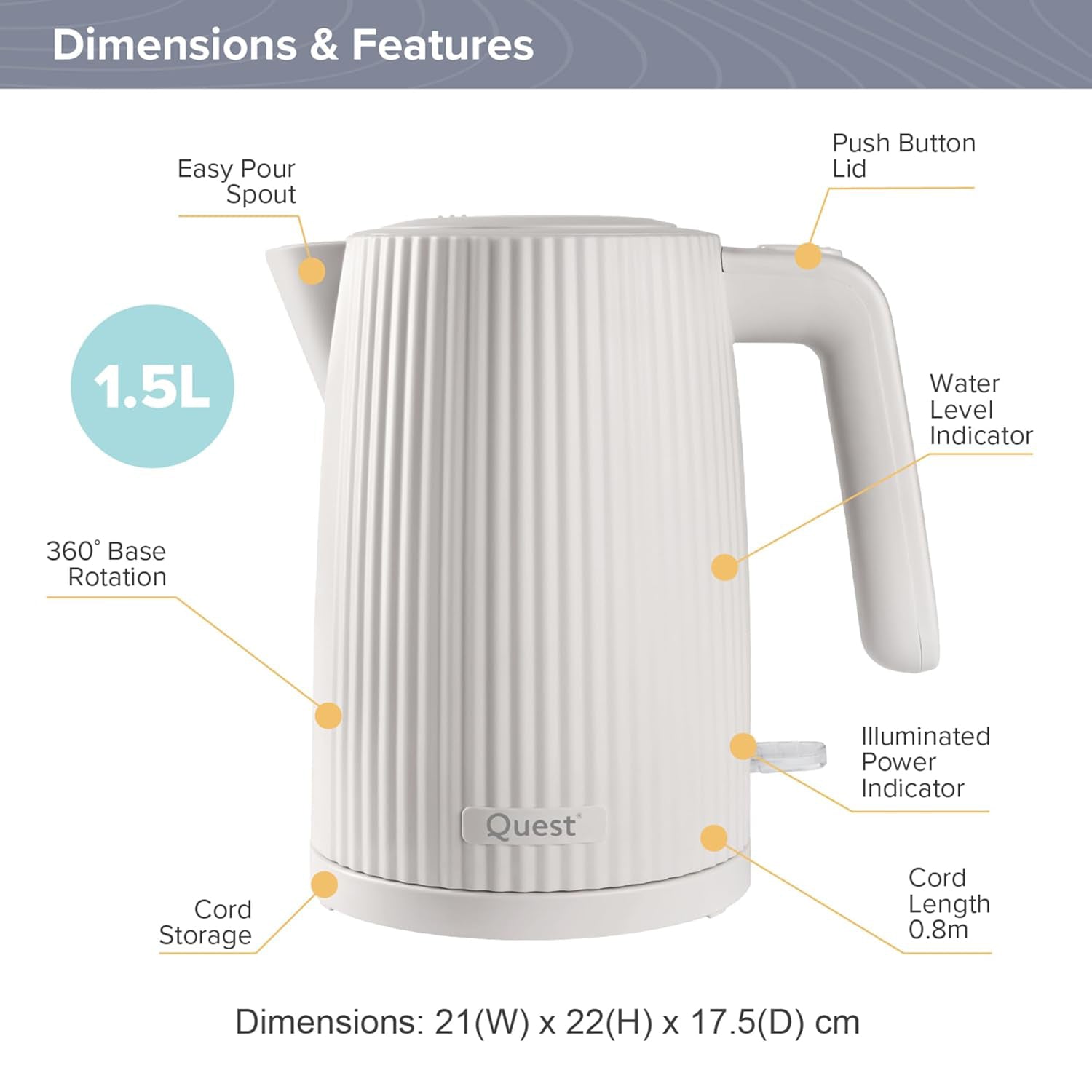Add style and functionality to your kitchen with the Quest Cordless Kettle. Featuring a sleek, modern grooved design, this 1.5-litre kettle combines fast boiling performance with practical safety features, making it ideal for busy households or office use.
