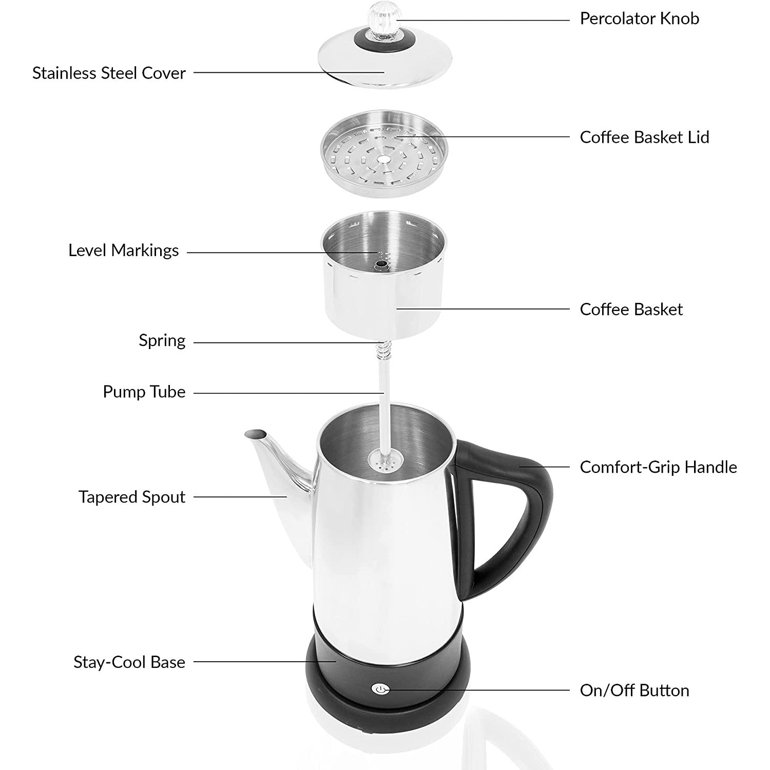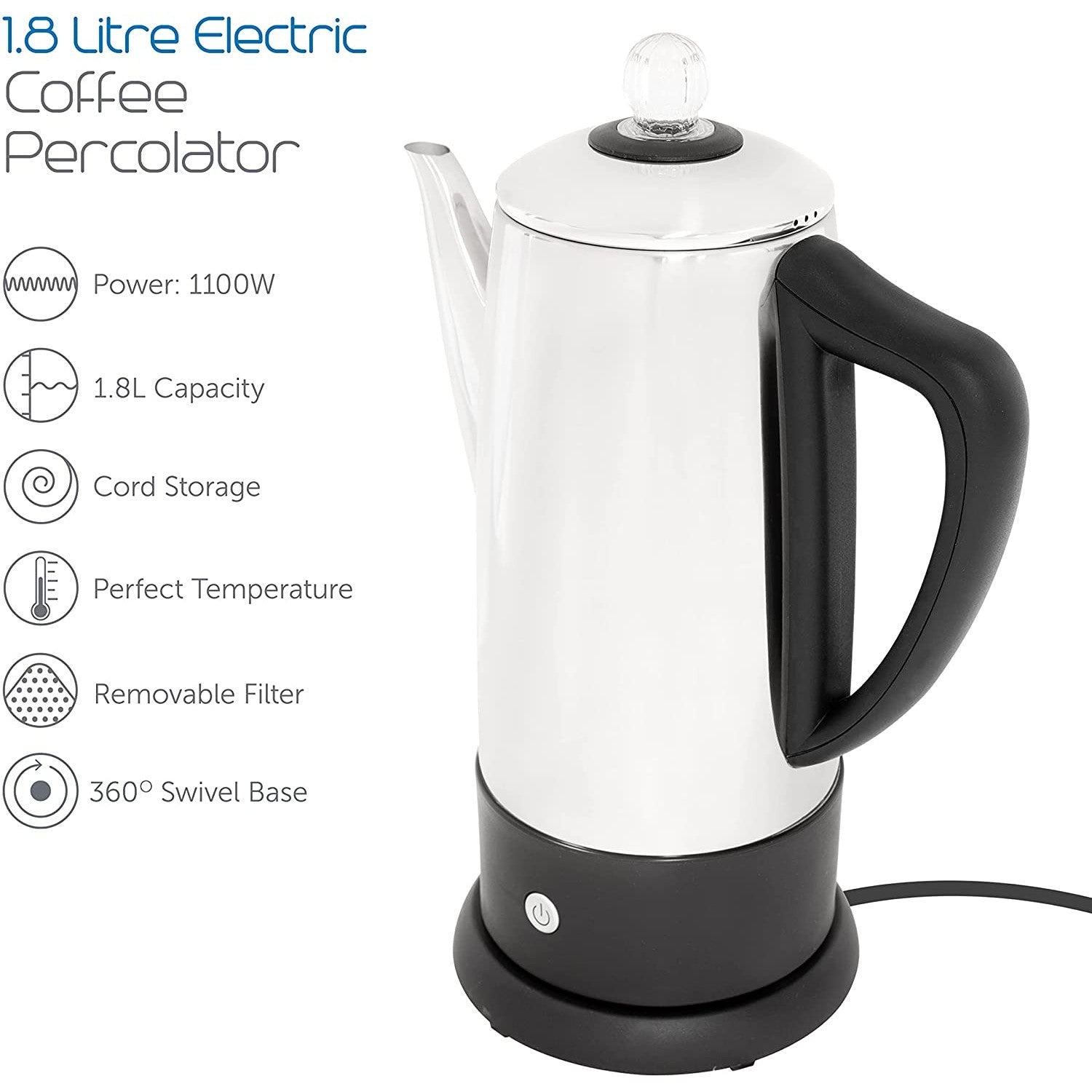 Quest 1.8 L Stainless Steel Electric Coffee Percolator