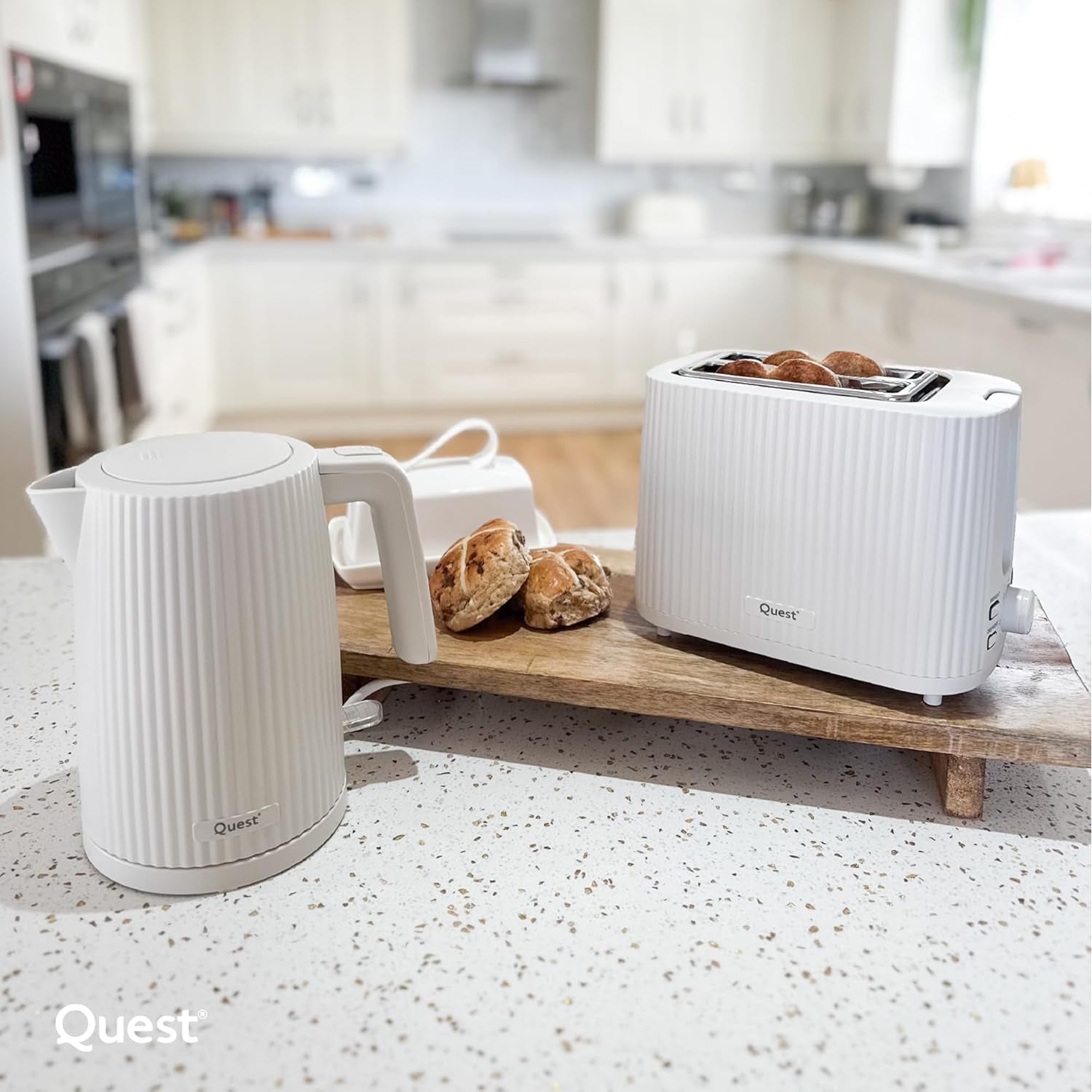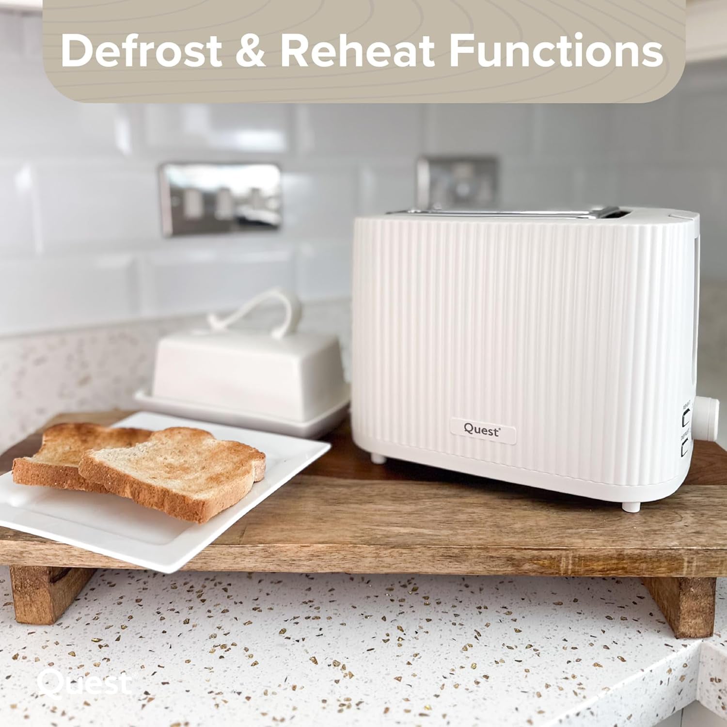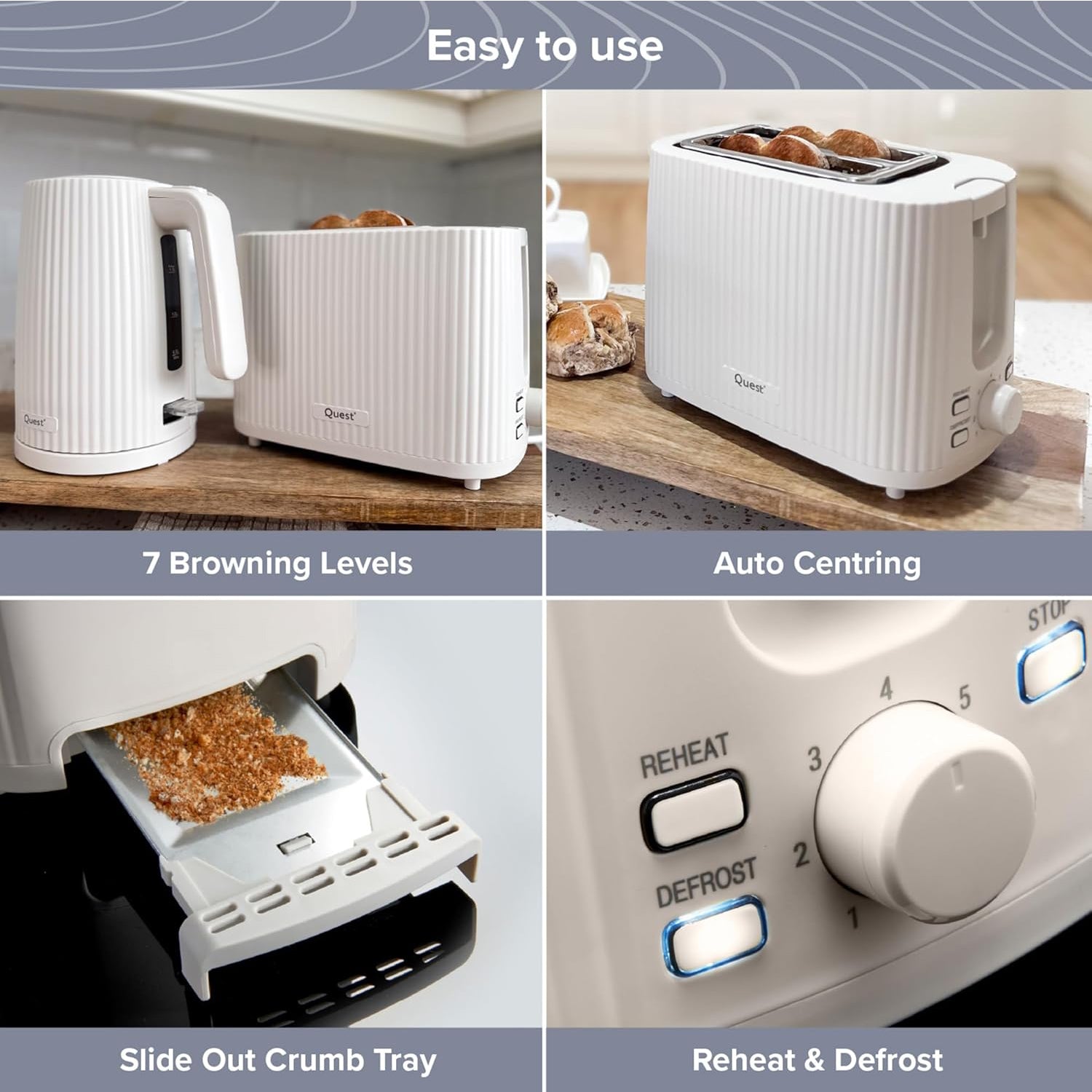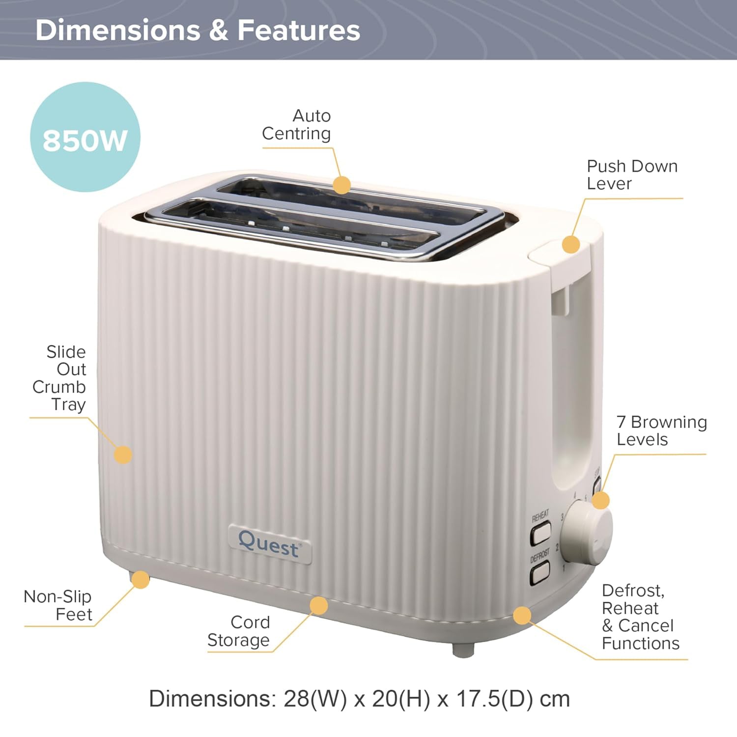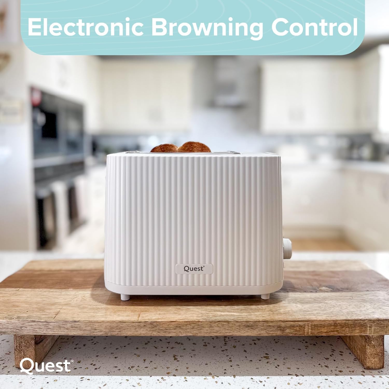 Bring modern elegance and everyday convenience to your kitchen with the Quest 2 Slice Toaster. Featuring a stylish grooved exterior in a clean white finish, this toaster not only looks great on your countertop but also delivers reliable performance.