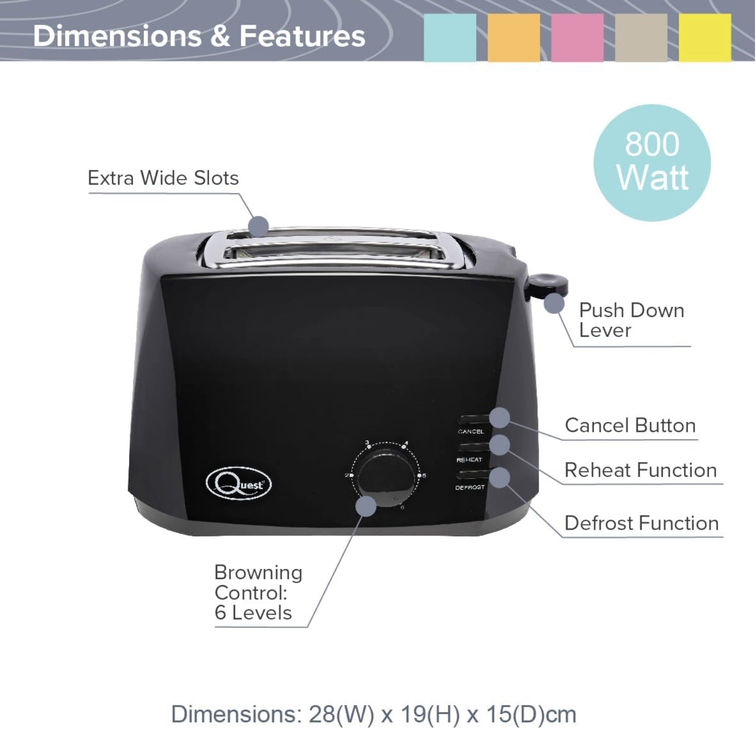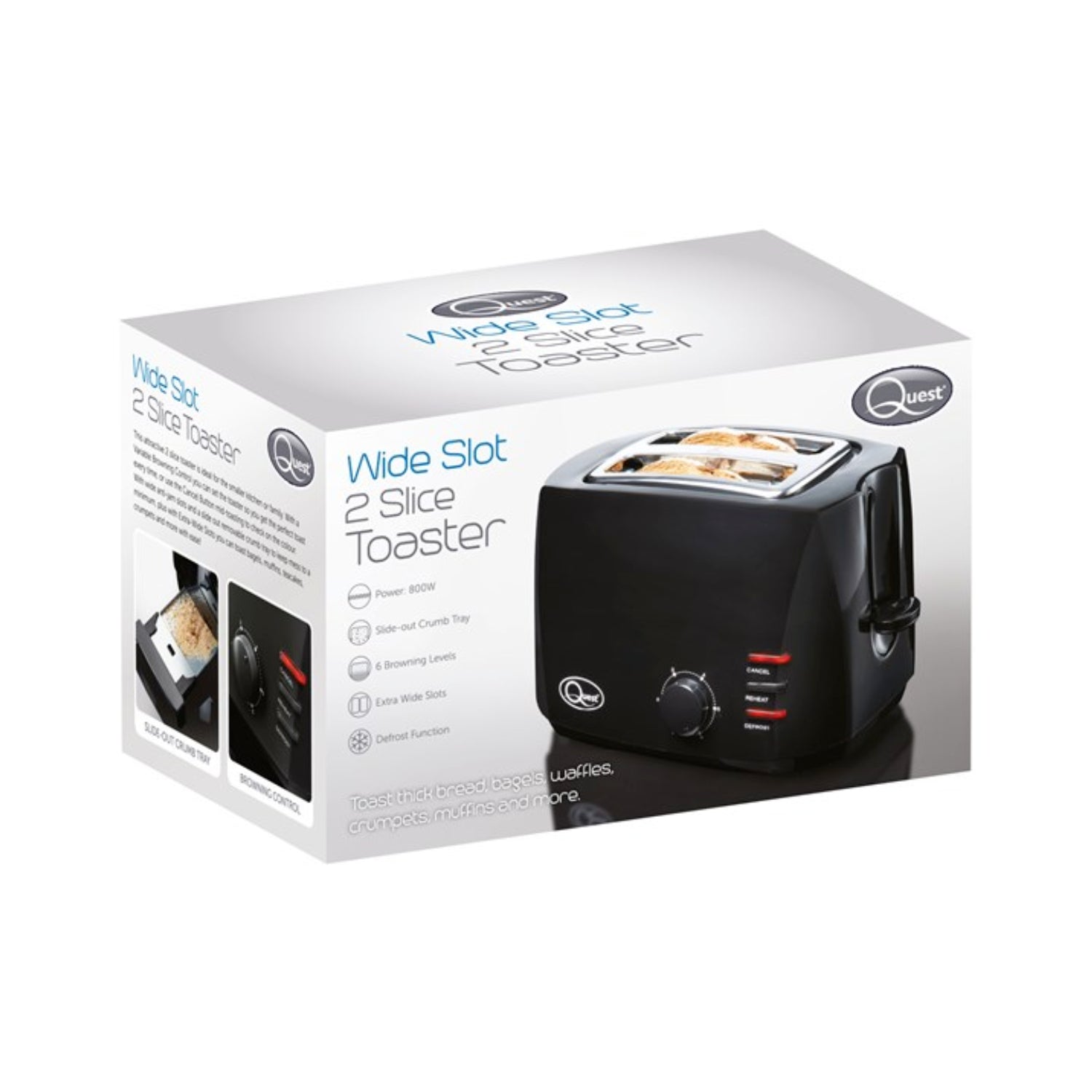 Quest 800W 2-Slice Toaster Black