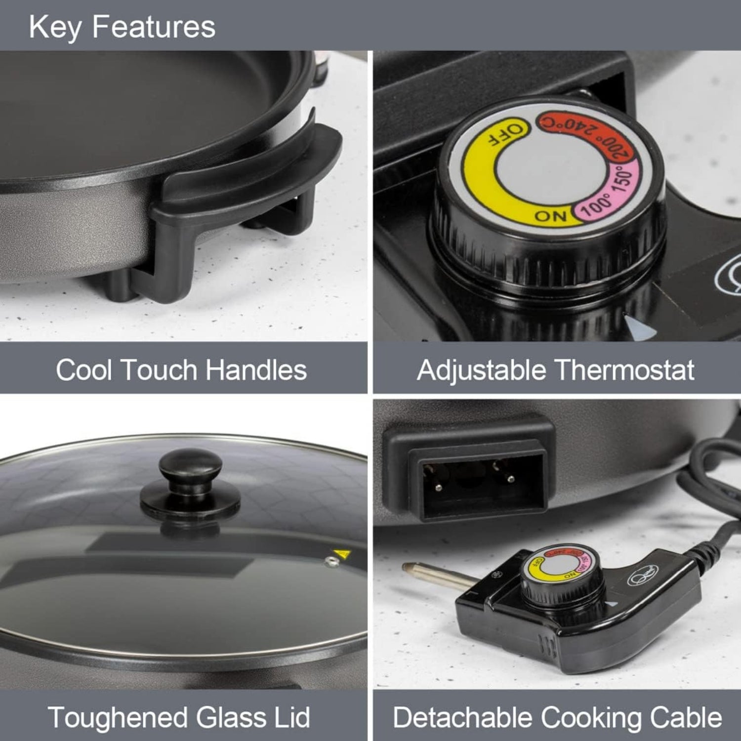 The Quest multi-function electric cooker is perfect for families, large or small. Fully equipped to help you serve breakfast, lunch or dinner. Cook a full English breakfast or serve up your favorite authentic curry. With the removable cord you are able to unplug the appliance and serve straight on the table. Ideal when you are entertaining guests or large numbers of people. You are able to cook a variety of meals in the multi-function cooker. One-pot meals such as; paella, curry, fajitas, stews, stir fry etc. Top Tip: The cooker is a must-have to take with you on a caravan holiday.