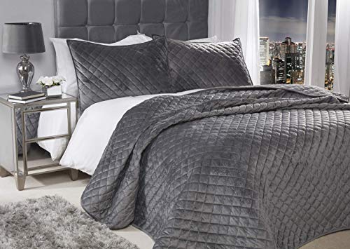 This luxuriously soft and plush velvet quilted bedspread with diamond stitch detailing. It is suitable for use as a bedspread, a blanket or as a folded bed runner. Material: 100% polyester, it is machine washable. This set includes 1 x quilted bedspread and 2 x pillow shams, bedspread size is 220cm x 240cm (87" x 94") (Approx) and pillow sham size is 50cm x 75cm (20" x 30")(Approx).